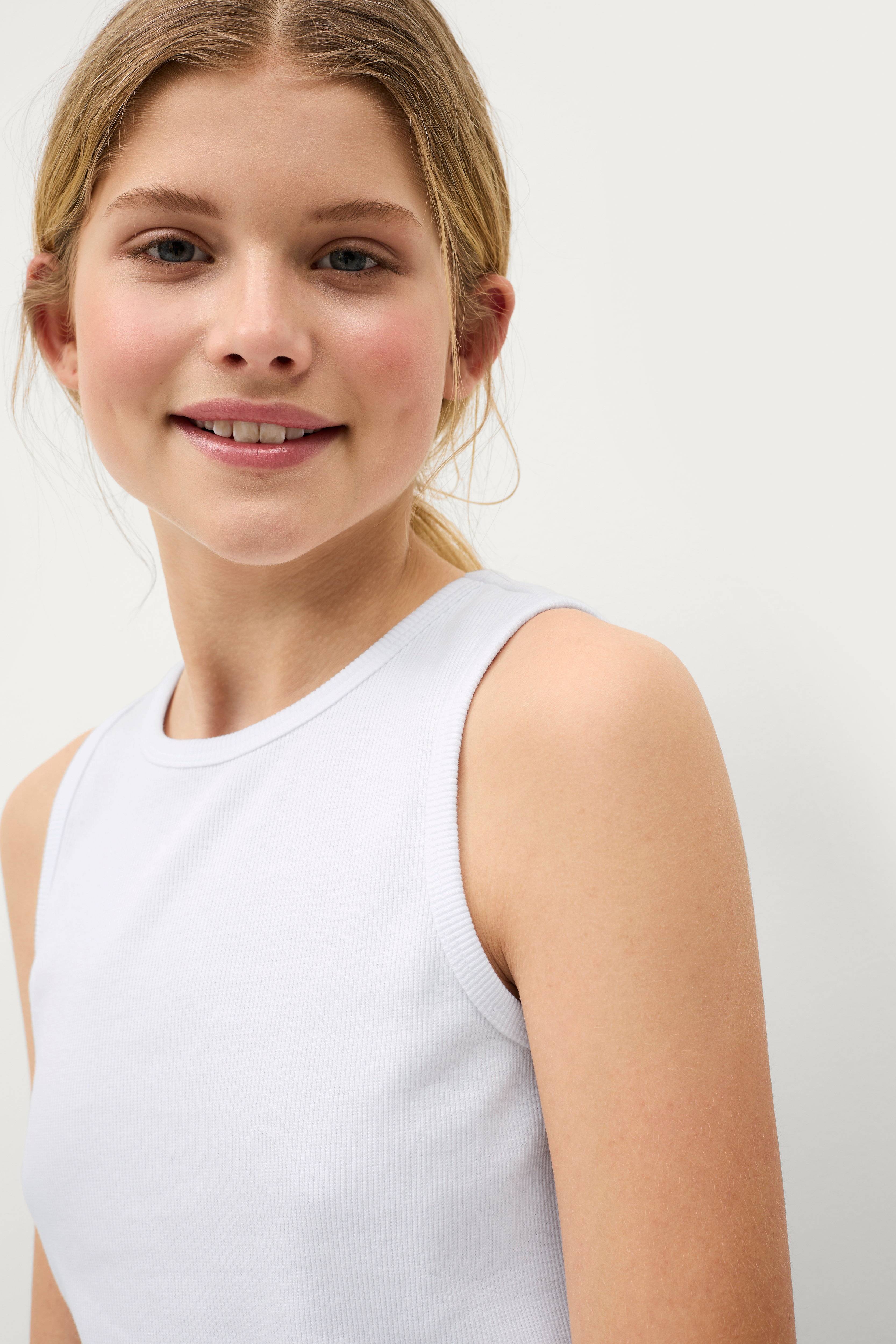 • Ribbet tanktop• Ribkant i halsen og omkring ærmeåbningerne