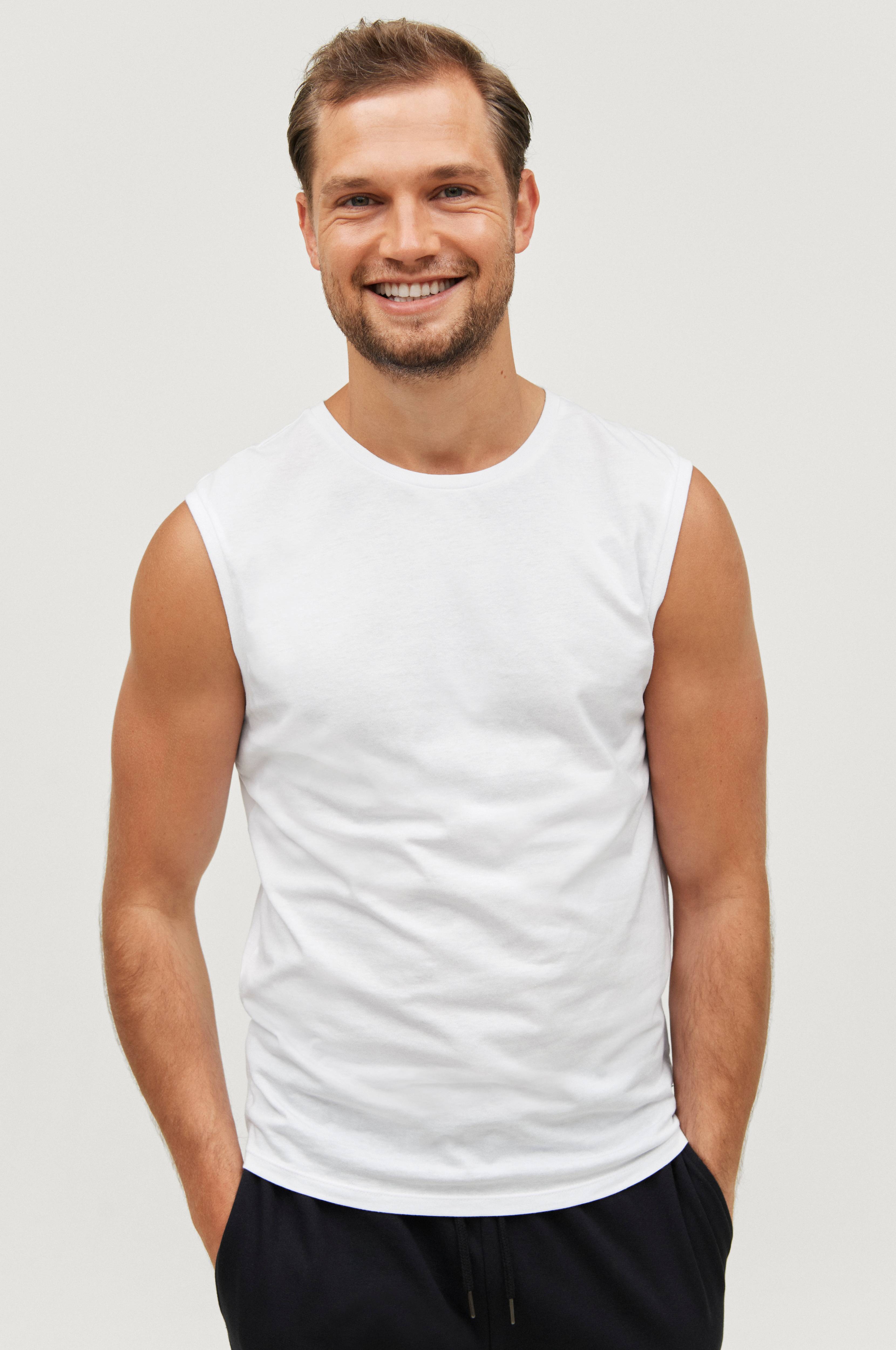 Top Kent i jersey med ribkant langs ærmegab og halsudskæring.