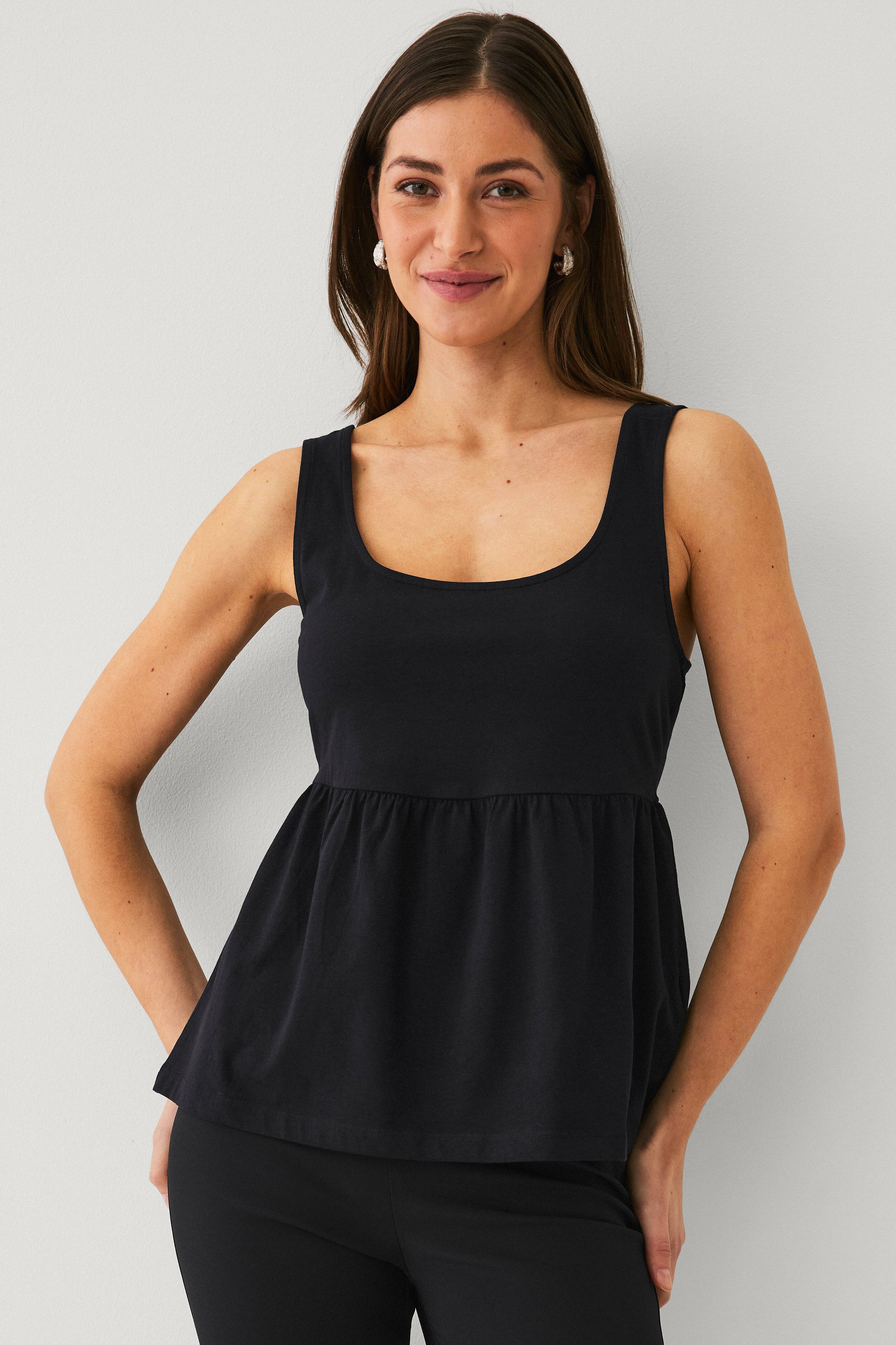 • Camisole i blød bomuldsblanding• Afrundet udskæring• Elastik med flæsedesign nederst• Længde: 59 cm i størrelse S