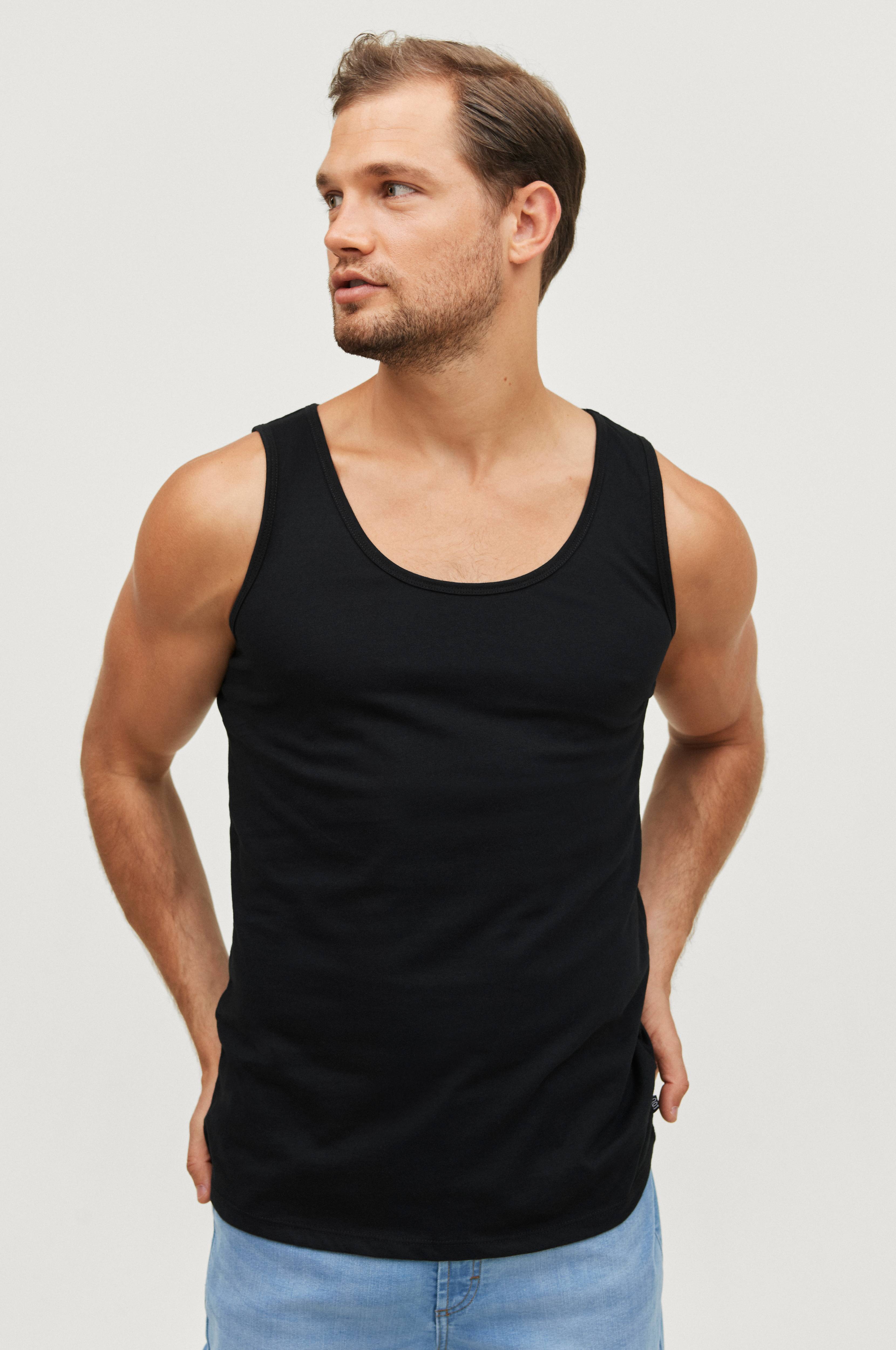 Tanktop i 2-pak fra On Our Terms i blød jersey af bomuld. To ensfarvede med rund hals. Længde ca. 71 cm i str. M.