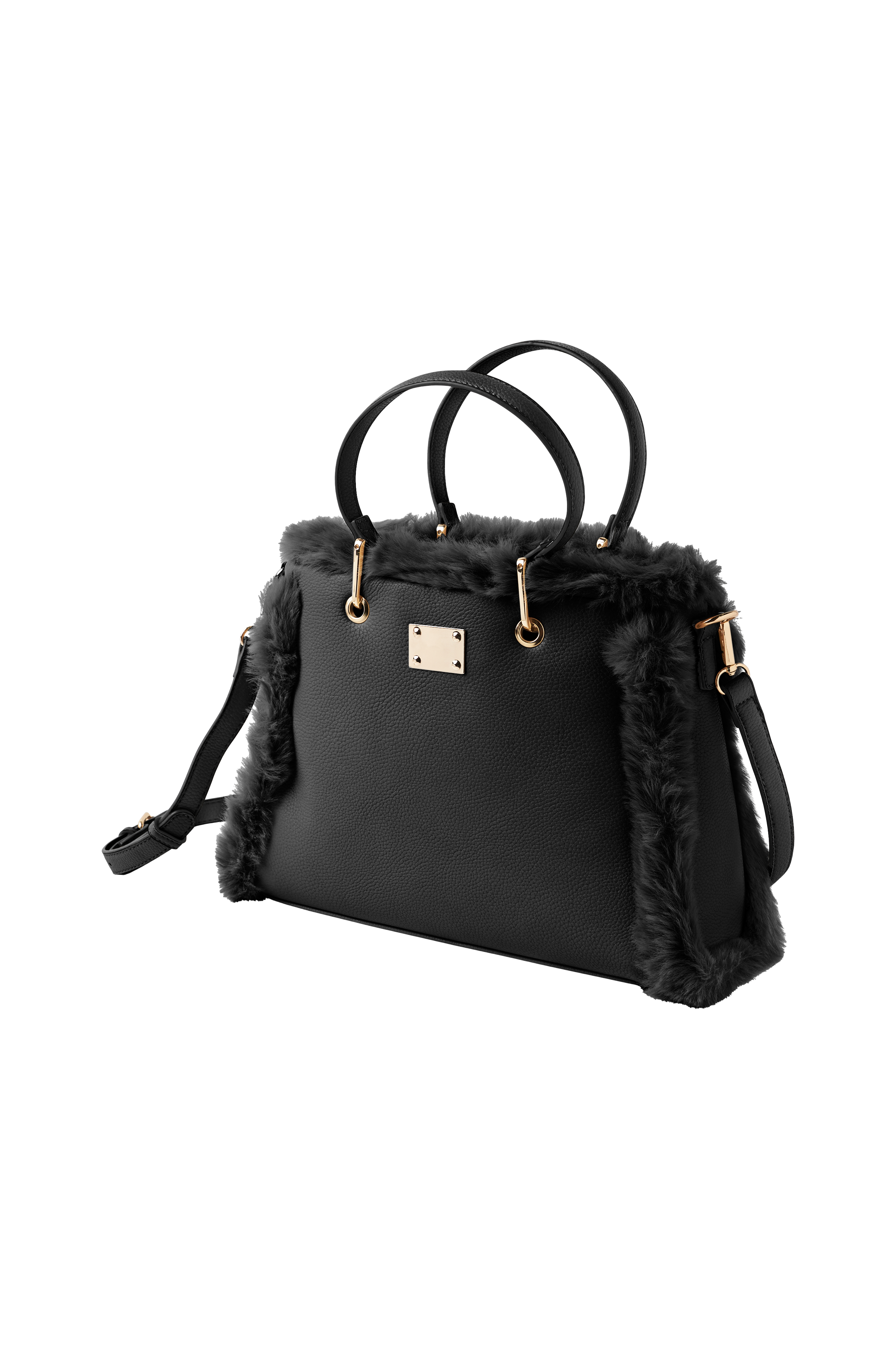 • Firkantet taske i imiteret læder med detaljer i kunstskind• To bærehåndtag• Aftagelig skulderstrop• Lukning med trykknap• Tre fag på indersiden• Tekstilforing• Mål: B 33 x H 23 x D 10 cm