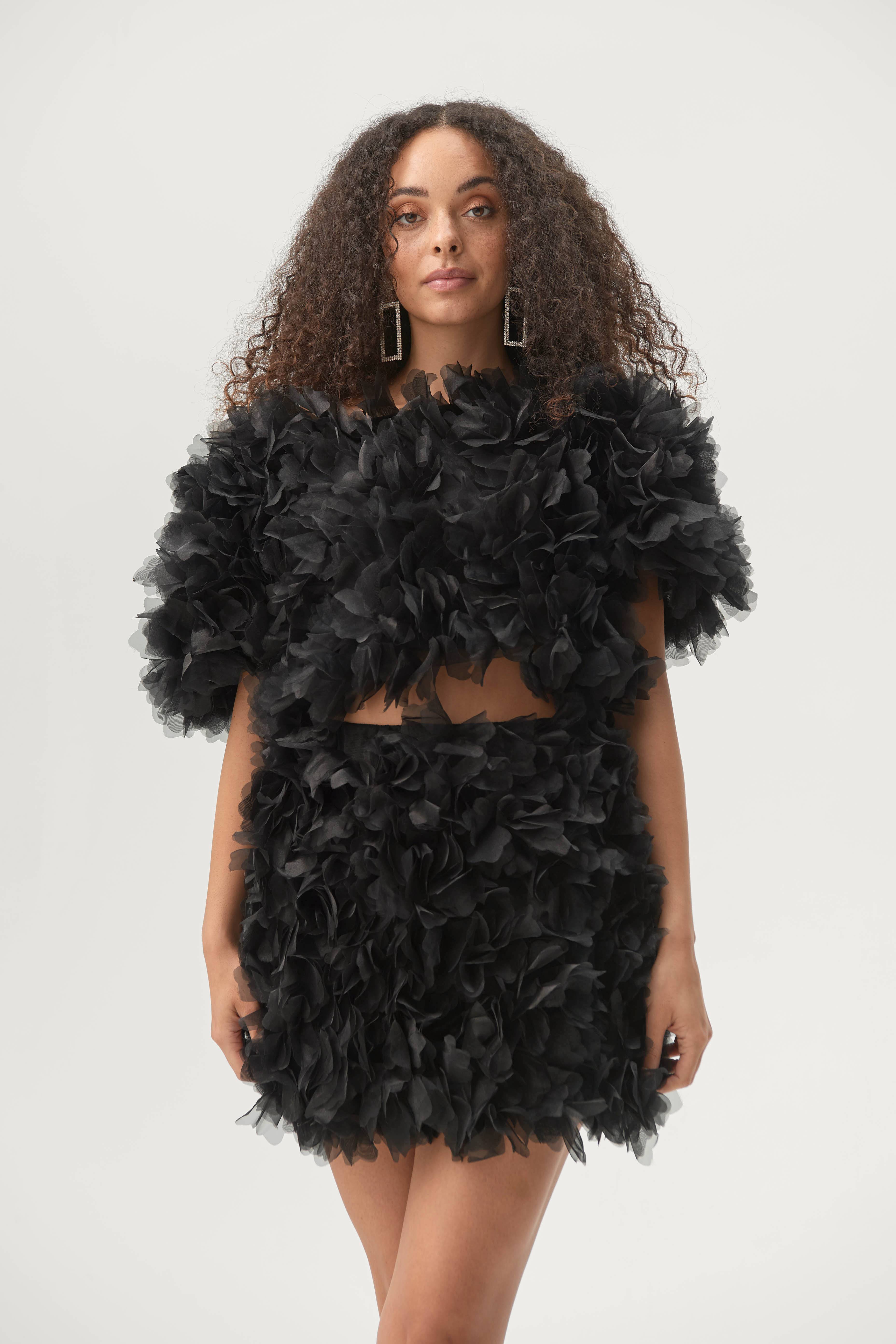 The Miniskirt fra Selam Fessahaye x Ellos er skabt eksklusivt til Ellos af den internationalt anerkendte modedesigner Selam Fessahaye. Kort model med heldækkende, smukke 3D-blomster i luftig organza på meshbund med blankt for i satin. Skjult elastik i taljen og skjult lynlås bagpå. Længde ca. 43 cm i str. 38. Bøjle og beskyttende klædepose medfølger.
