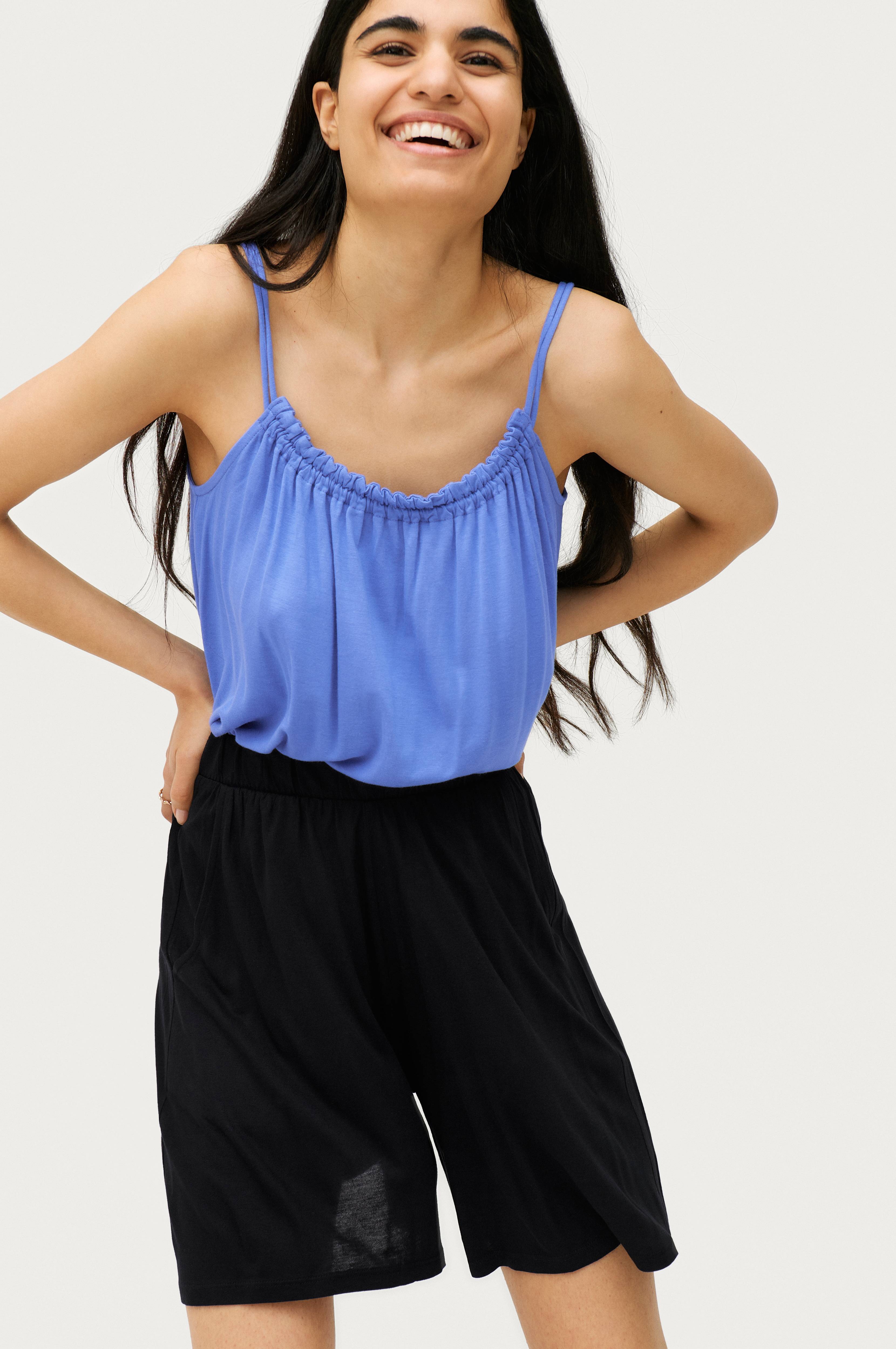 • Ærmeløs model• Smalle, dobbelte skulderstropper• Rynket halsudskæring• Fremstillet af blød viskosejersey