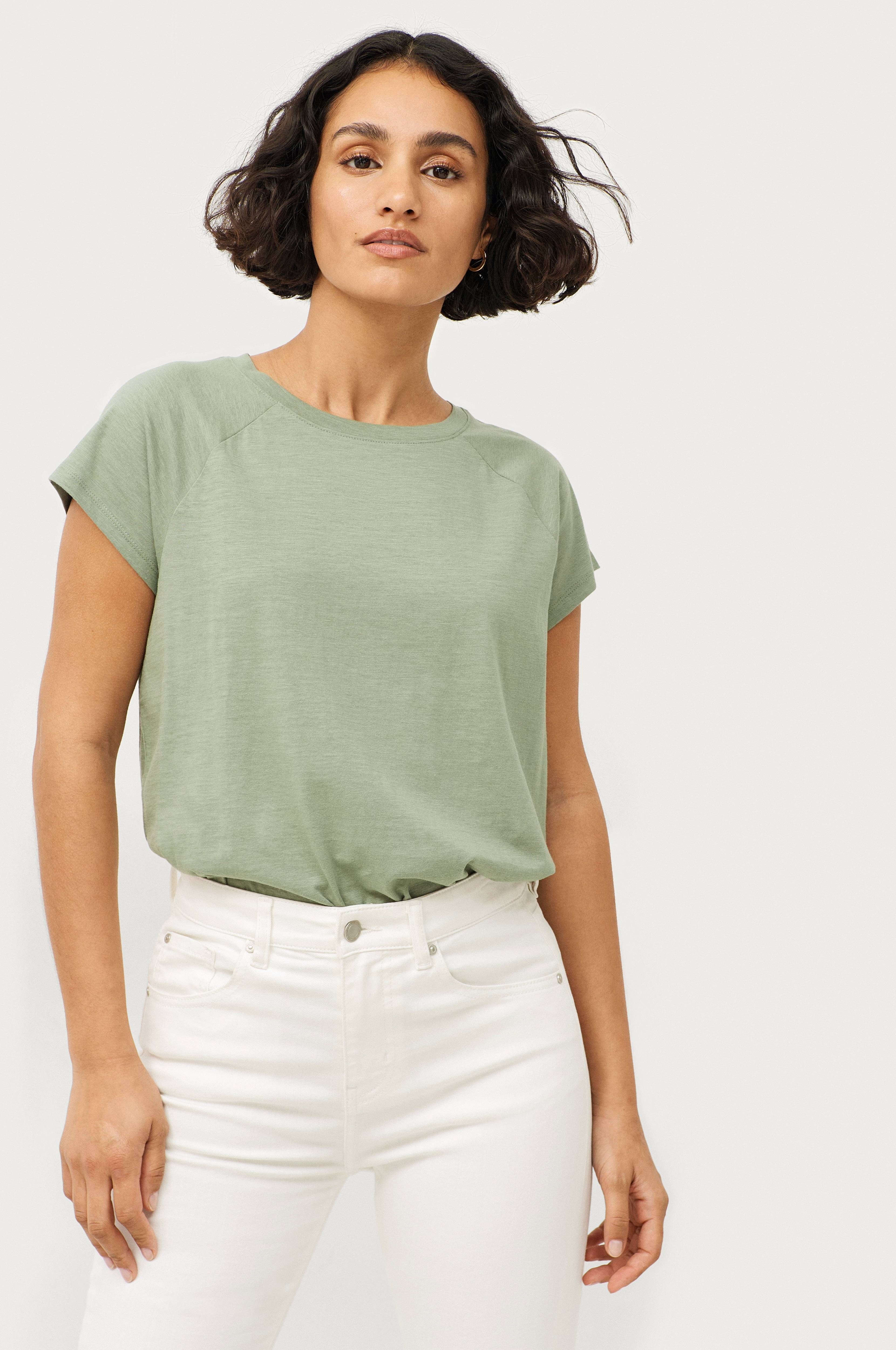 Varmt vejr skjorte lavet af tyndt strikket eller hæklet. I vasken strakte sig ikke og krympede ikke. Farve behagelig grønlig, model komfortabelt afslappet.