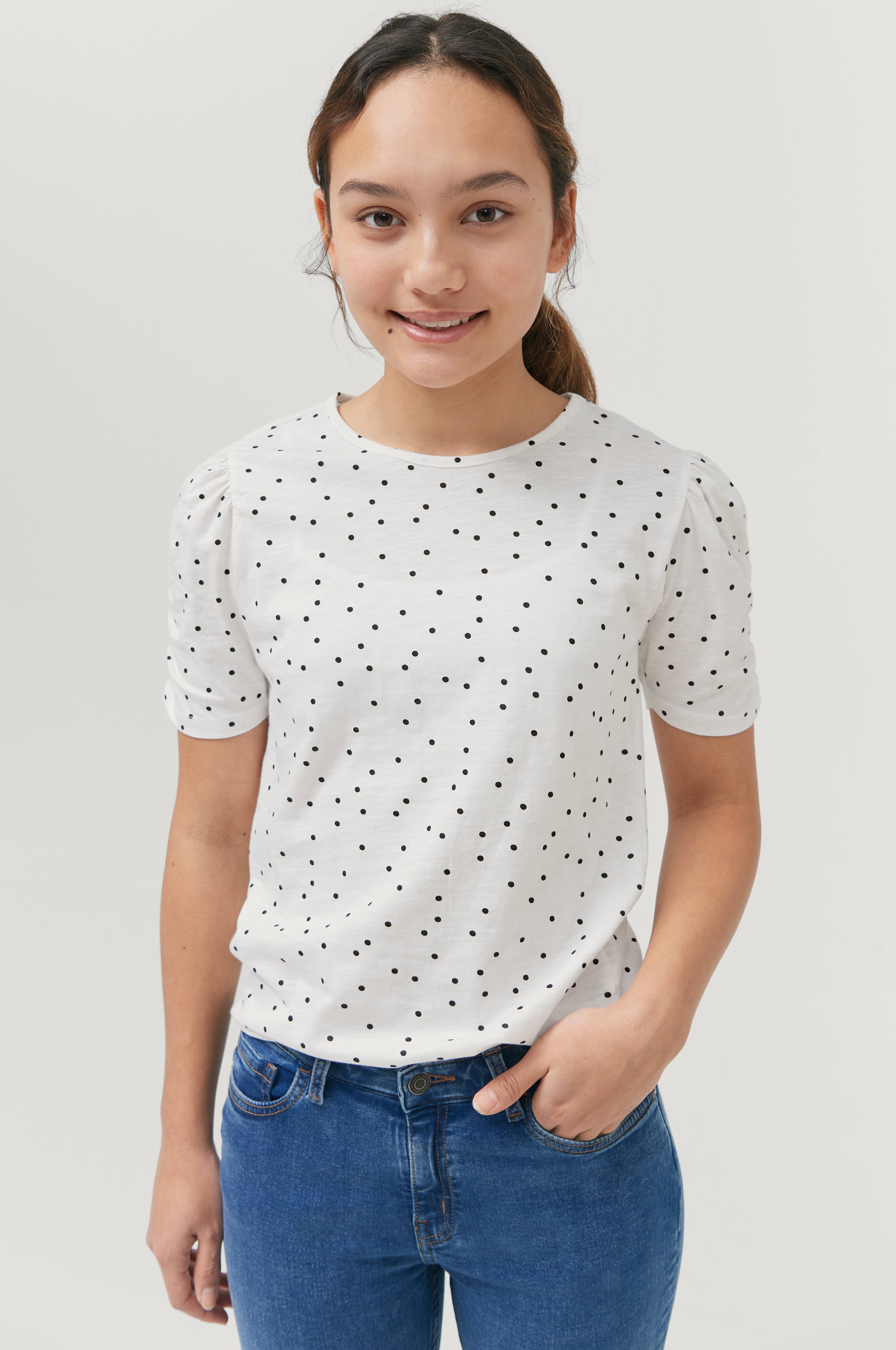 Top i slubjersey af bomuld med let, fin struktur. Rund halsudskæring med ribkant. Korte ærmer med puf og rynkning.