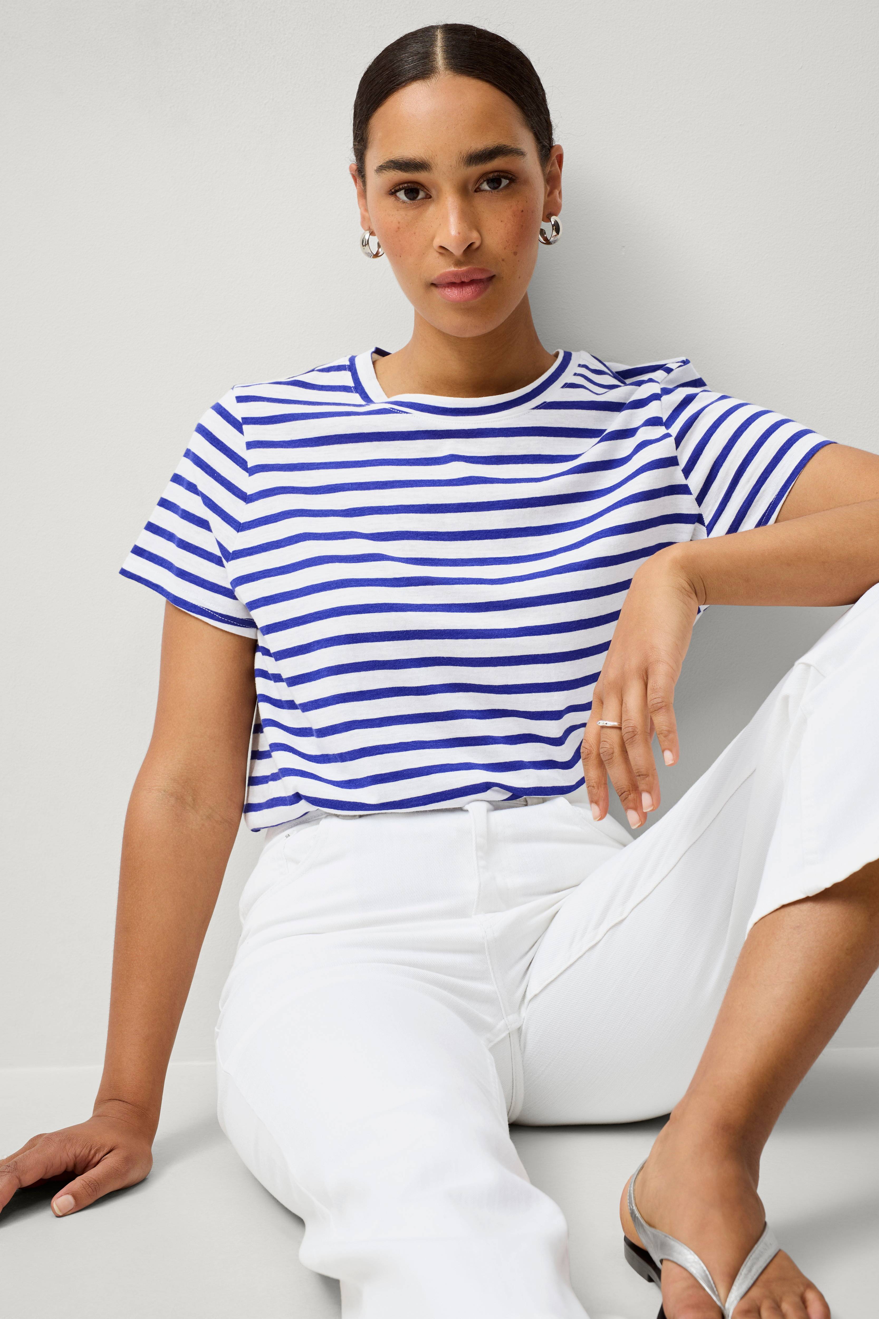 • Stribet top i bomuldsjersey• Korte ærmer• Rund hals