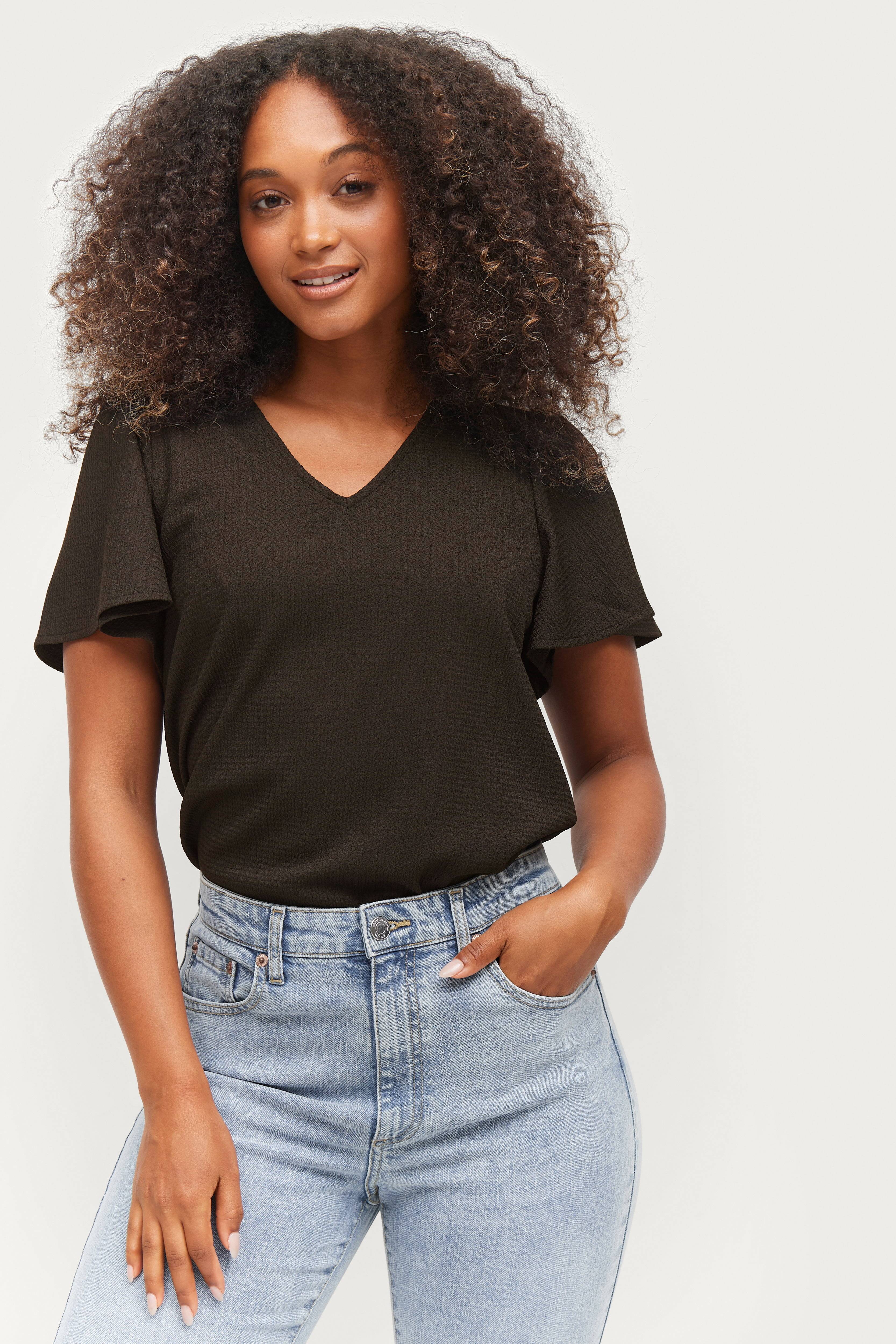 • V-udskæring• Flagrende ærmer• Strukturmønster• Længde: 65 cm i størrelse 34/36