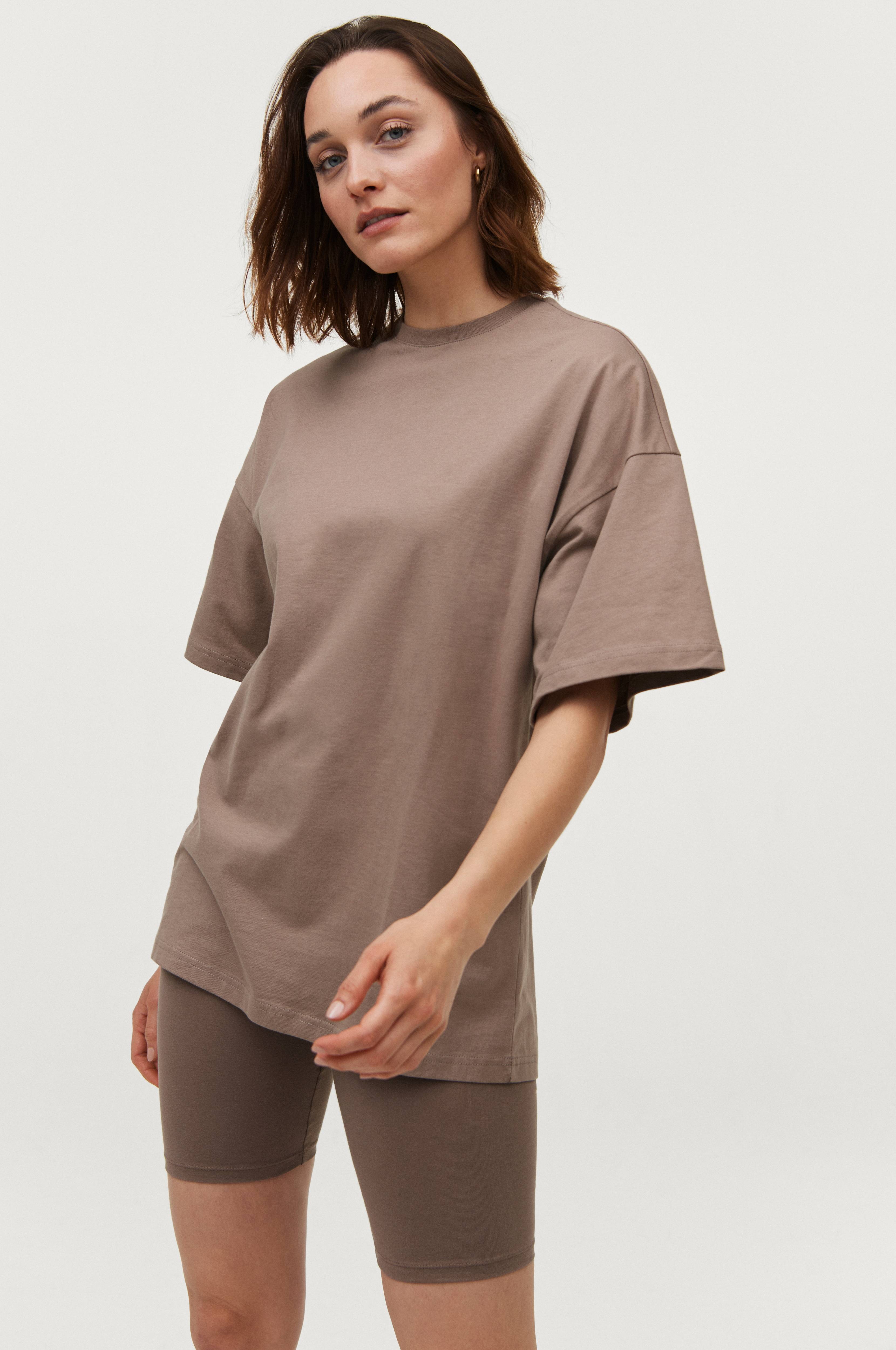 T-shirt i oversizemodel med rund hals og korte ærmer med lave skuldre. Fremstillet i kraftig bomuldsjersey. Længde ca. 74 cm i str. 34/36.