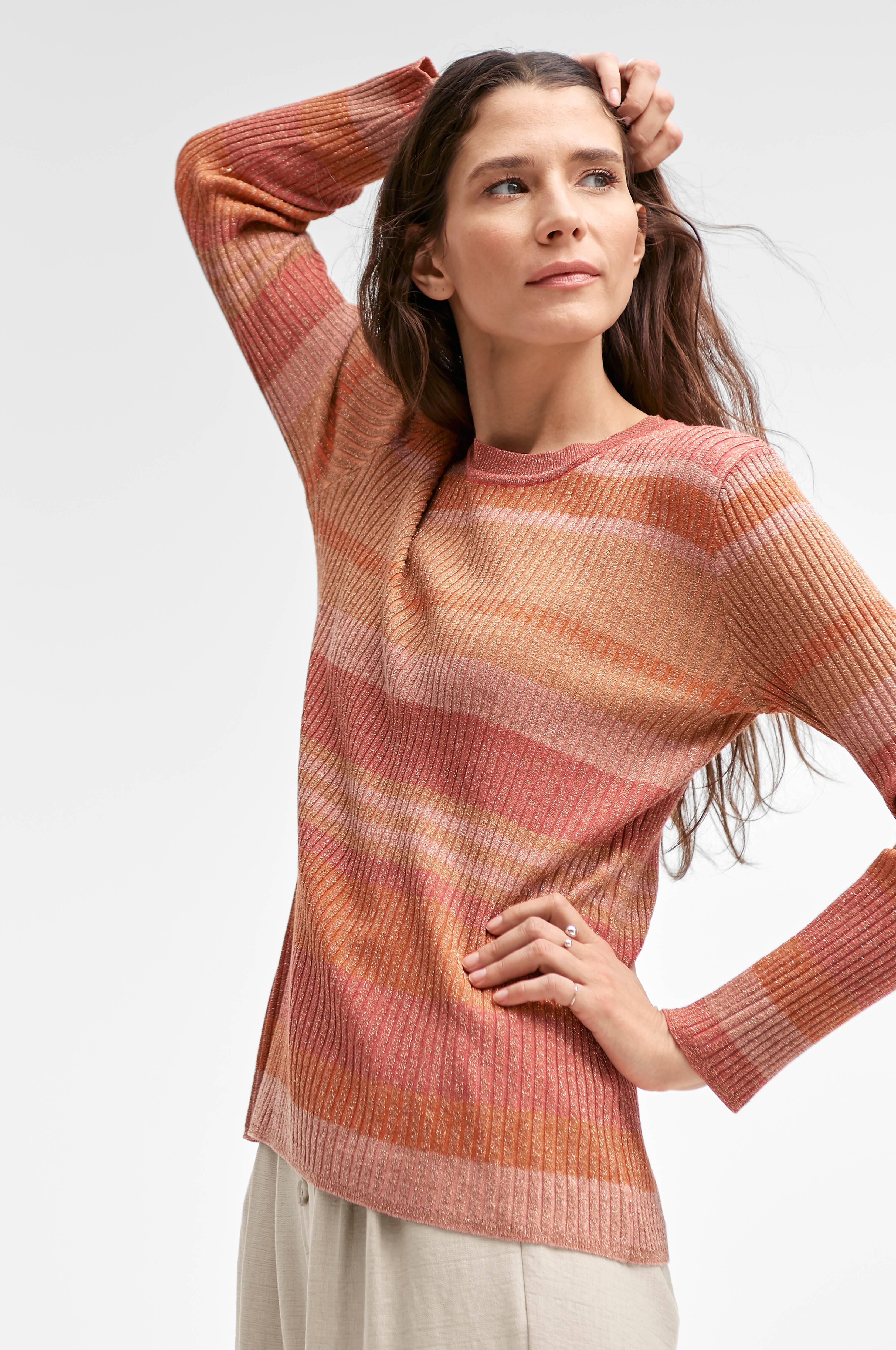 Top Gwyneth i ribstrikket, superstretchy kvalitet med glittertråd. Rund hals med ribkant. Længde 63 cm i str. 34/36.