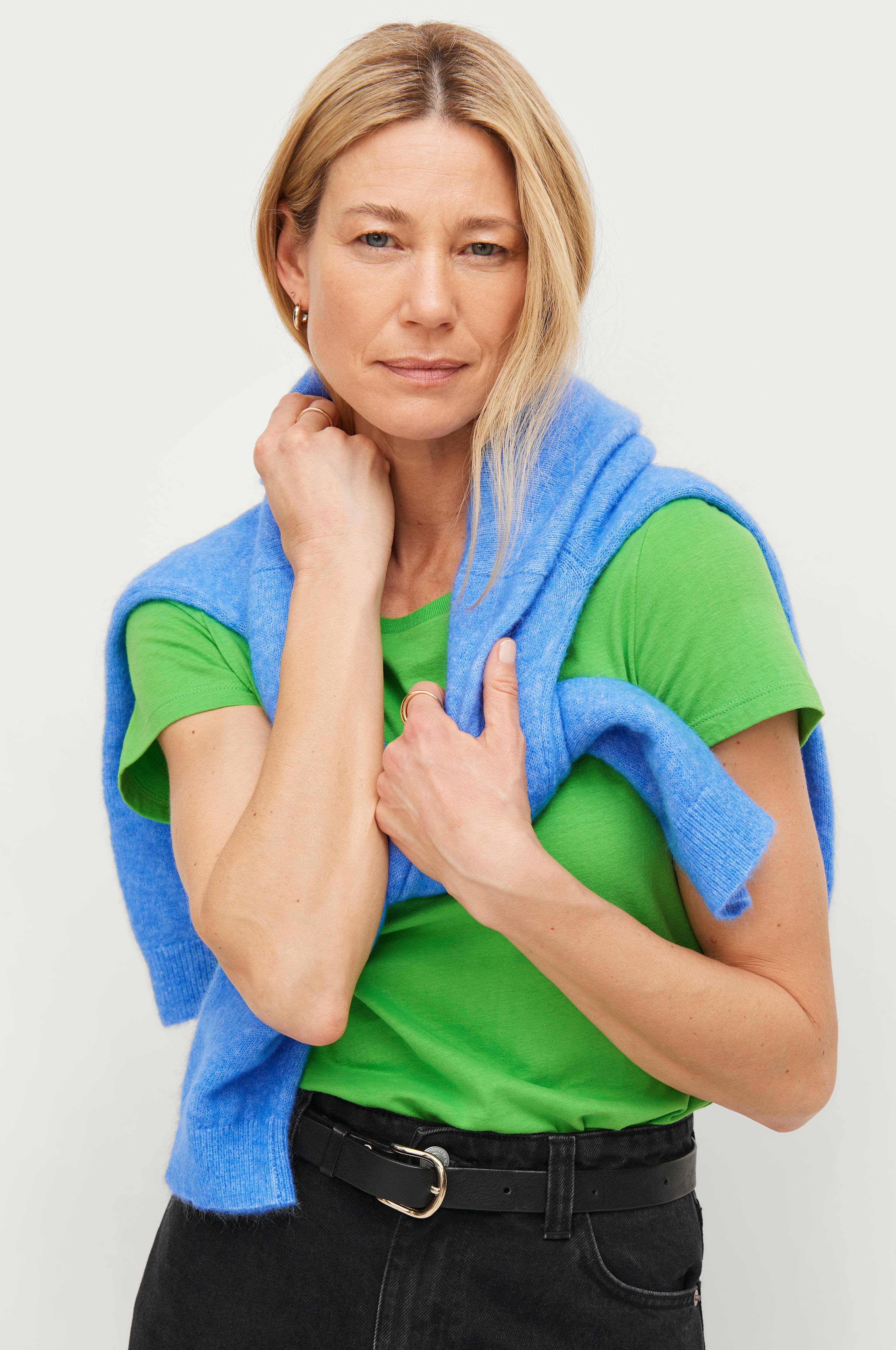 Jeg har købt i forskellige farver, og indtil videre synes jeg, det er en god hverdagstrøje. Jeg har vasket nogle af dem, som har bevaret deres form og farve!