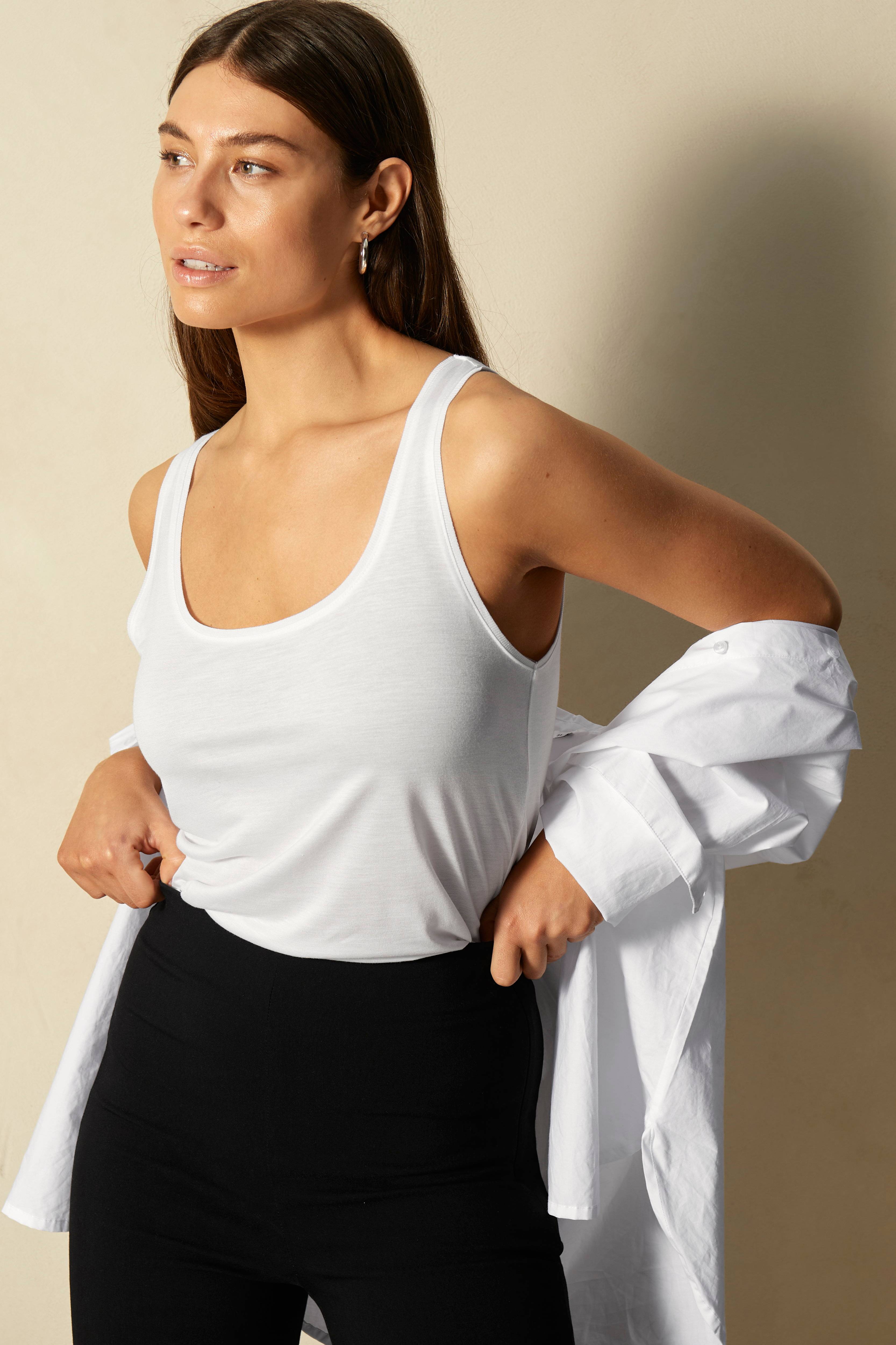 • Tøjet indeholder lyocell, som er et vedvarende materiale, og hvor fremstillingsprocessen sker i et lukket system, hvor alle ressourcer genanvendes og genbruges. Det har lavere miljøpåvirkning og kræver mindre vand end bomuld.