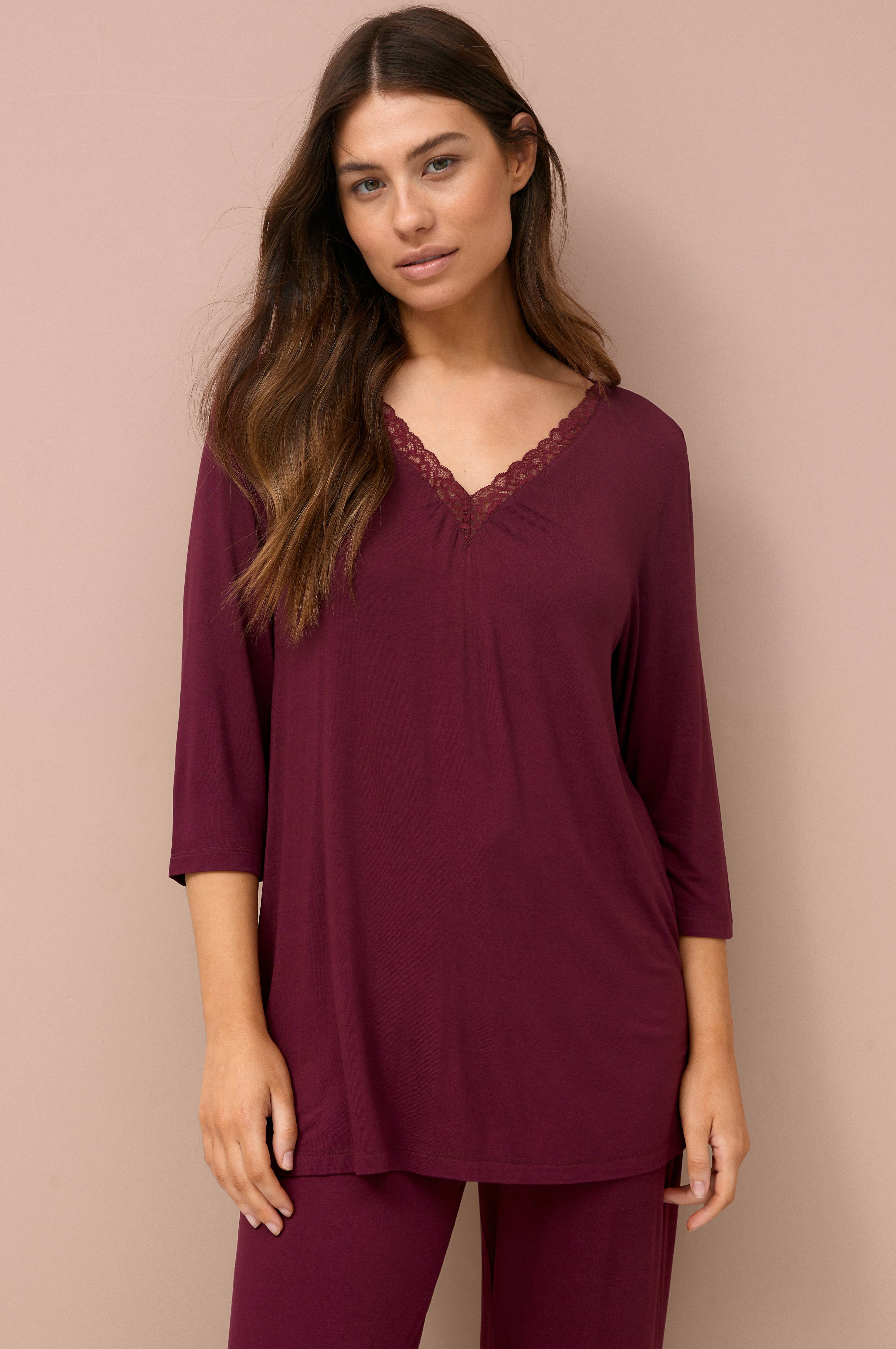 Behagelig tynd og tung kvalitet, jeg købte top, bukser og morgenkåbe. Følte mig flot. Passede til en lidt rund mave, er 163 cm, 62 kg og 56 år. Toppen lidt rummelig. Lidt for køligt til vin…