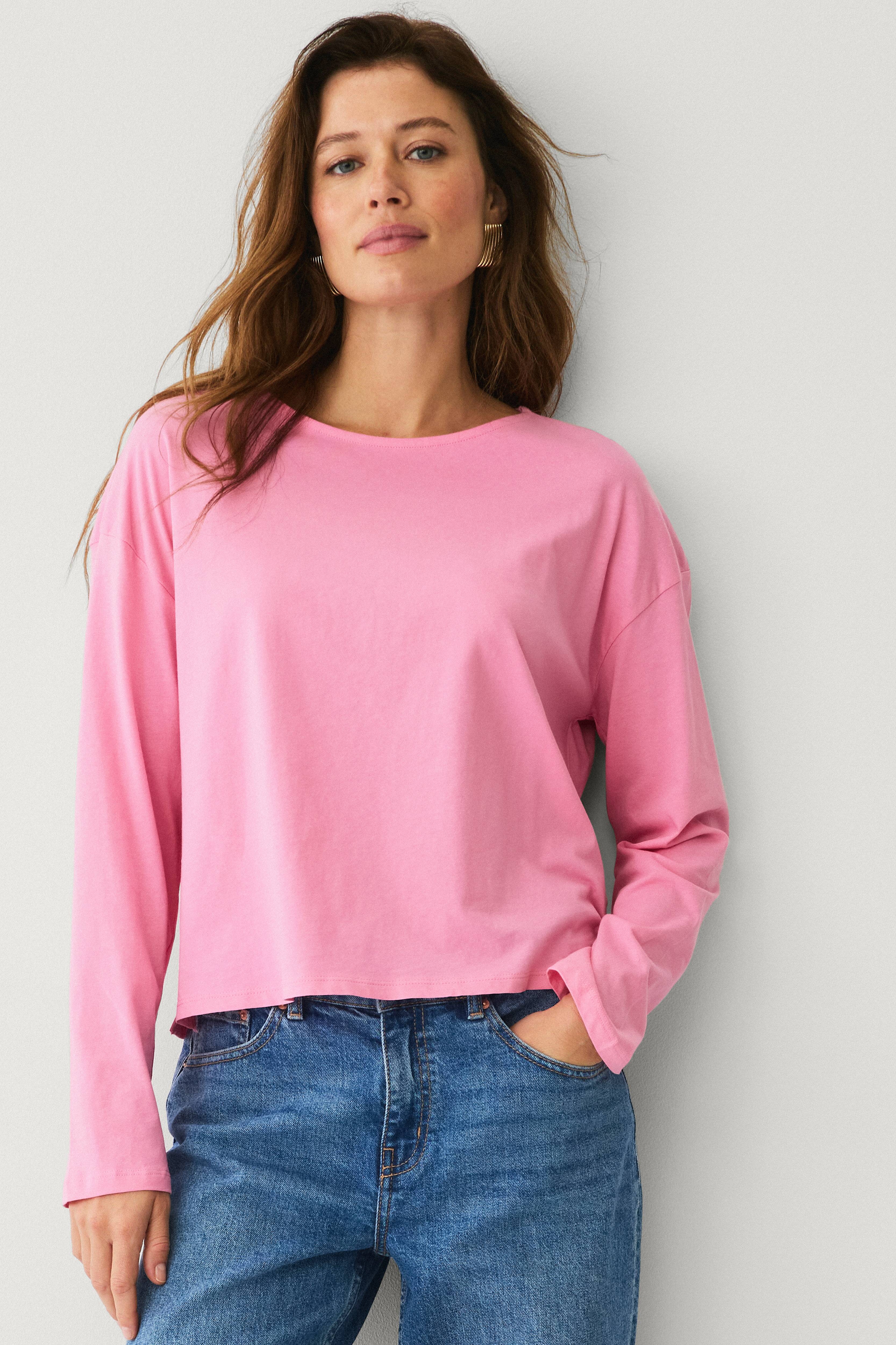 Meget flot og meget behagelig! Bruger den ofte. Har nu købt en mørkelilla også, men ønsker betydeligt flere farver. Svært at finde bomuldstrøjer med lidt videre hals.