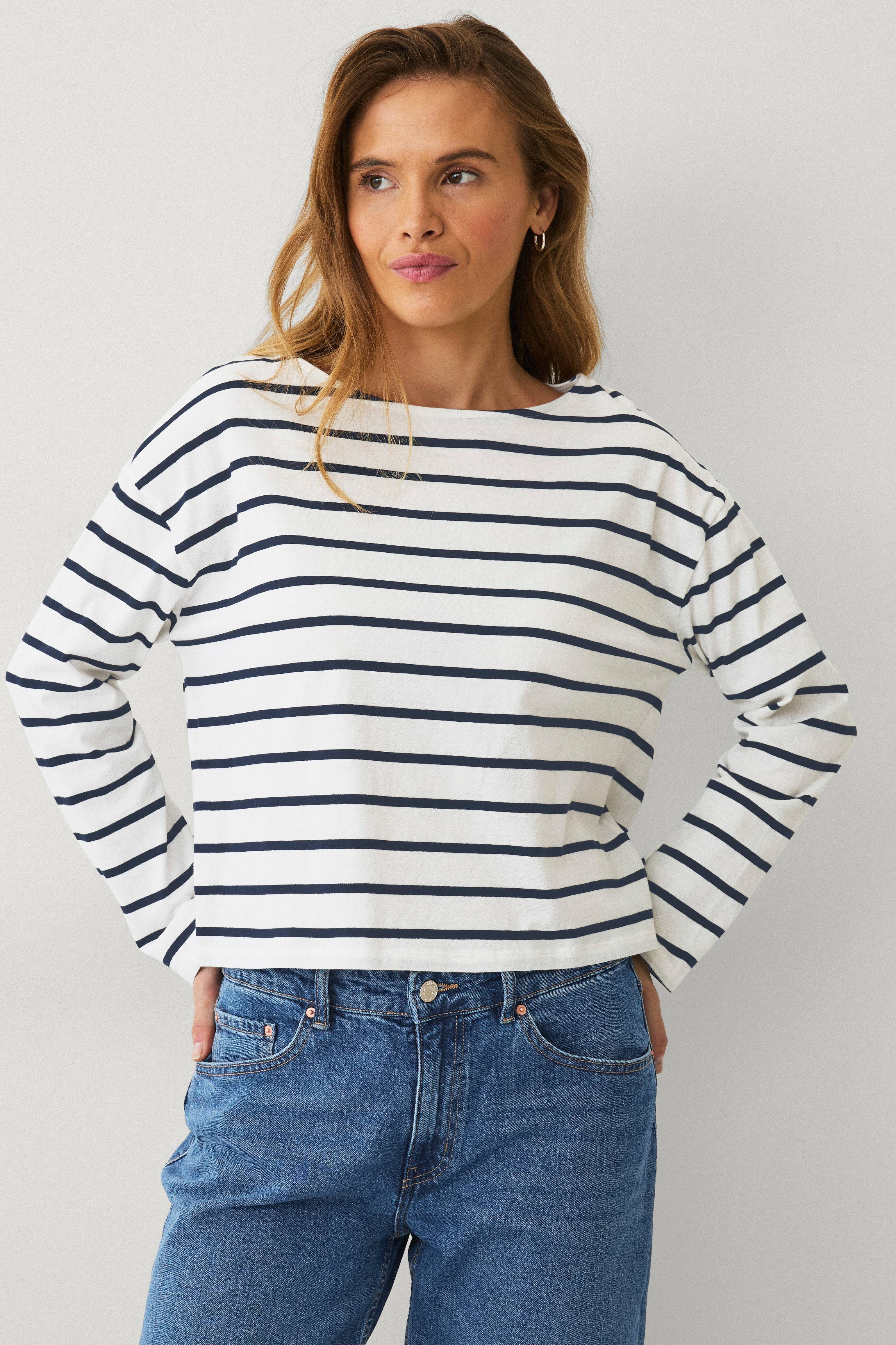 • Top i blød bomuld med afslappet pasform• Afrundet, bred halsudskæring• Lange arme med nedsænket skulder• Kort slids nede i siderne• Længde: 55 cm i størrelse S