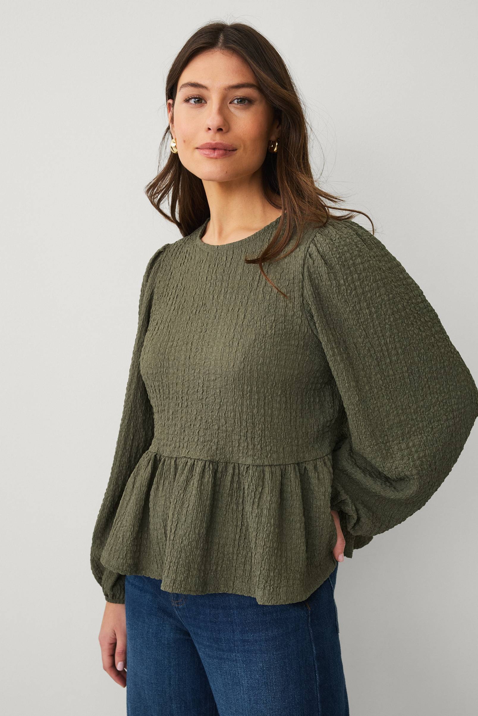 • Behandlet top• Rund halsudskæring• Lange ballonærmer• Volant ved nederste kant• Længde: 56 cm i størrelse S