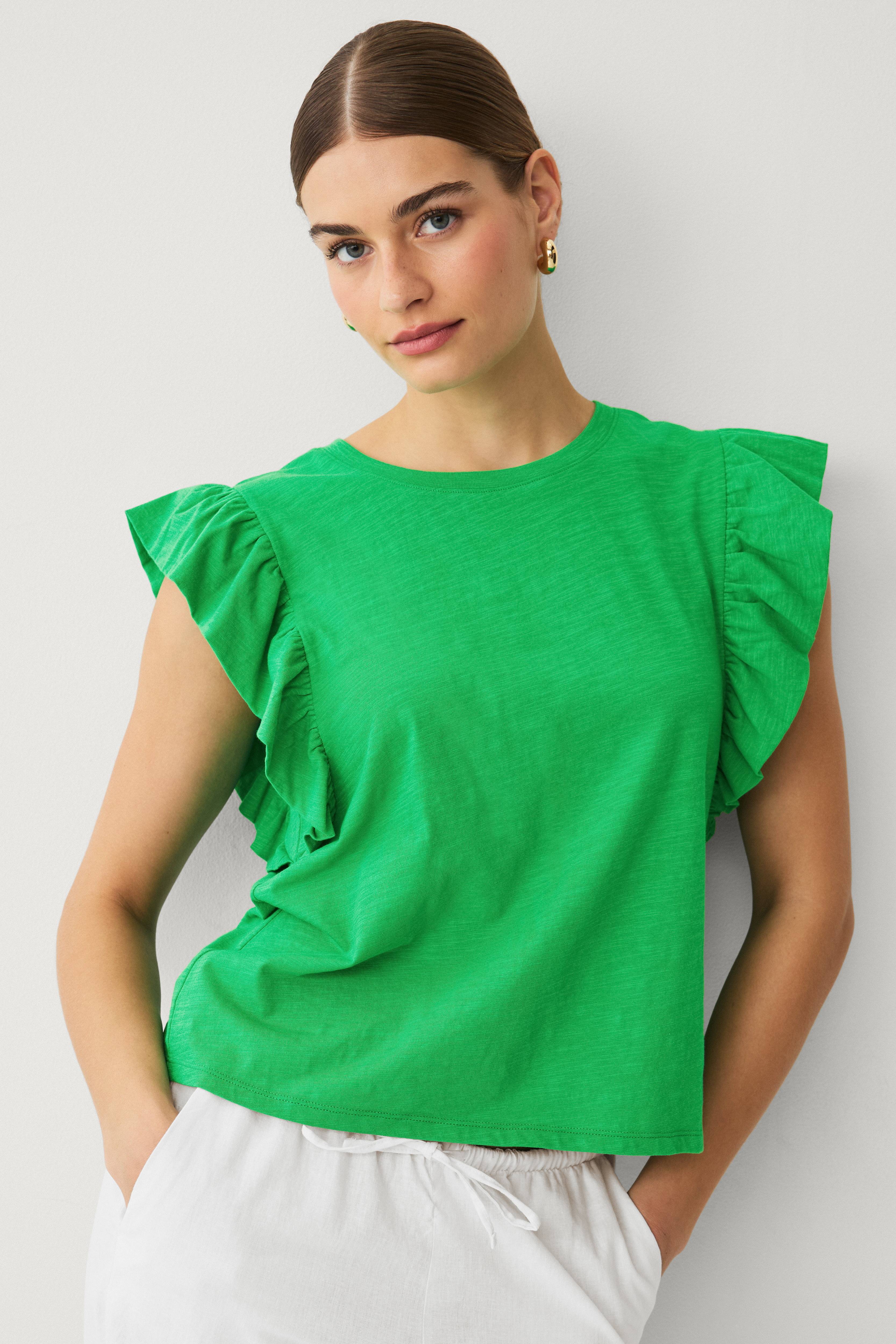 • Top i bomuldsjersey• Rund hals• Korte flagrende ærmer• Længde: 57 cm i størrelse S