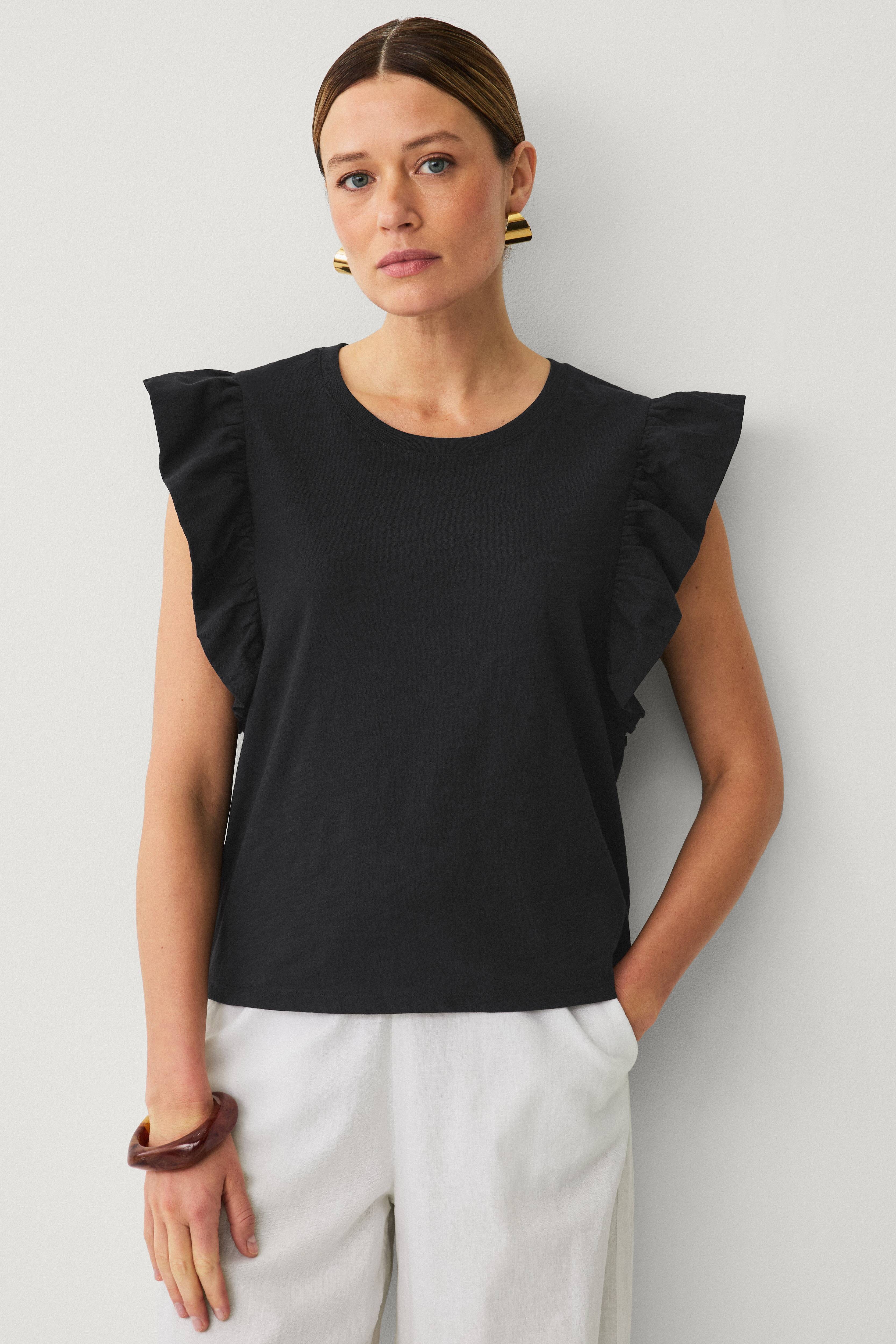• Top i bomuldsjersey• Rund hals• Korte flagrende ærmer• Længde: 57 cm i størrelse S