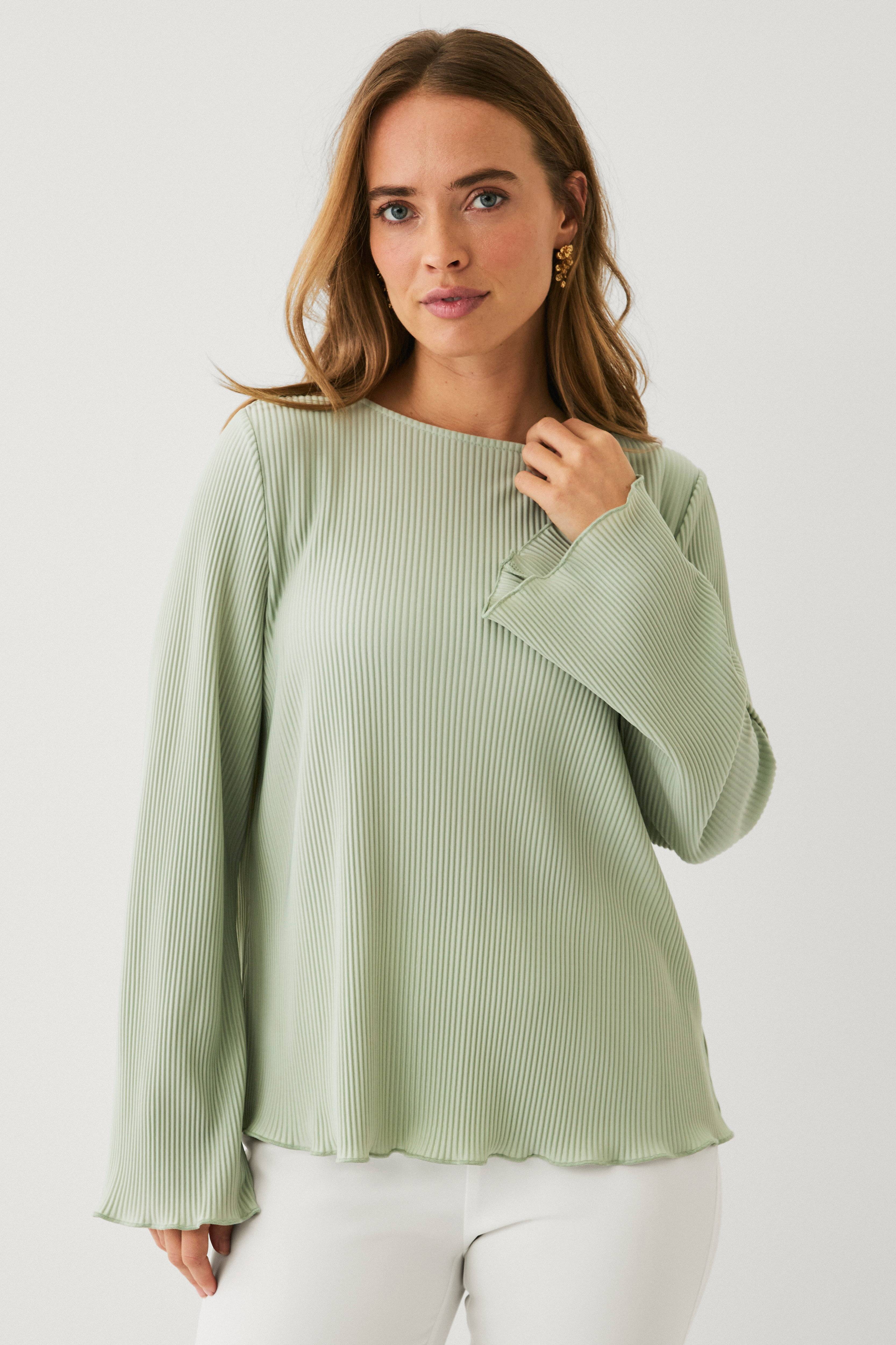 • Langærmet top i polyester med bølgeformet struktur• Afrundet halsudskæring• Bølget kant nederst og ved ærmeafslutningerne• Længde: 58 cm i størrelse S
