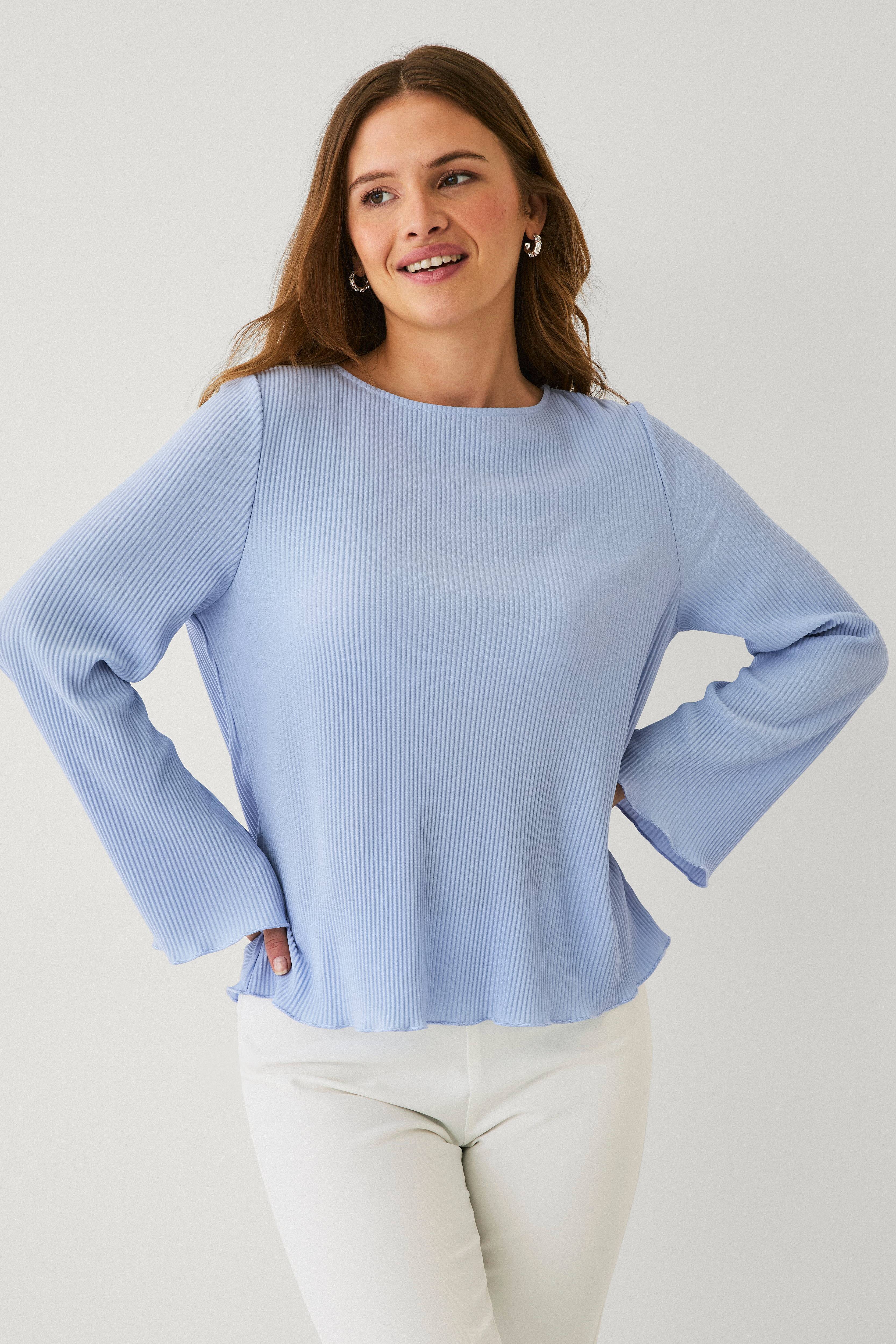 • Langærmet top i polyester med bølgeformet struktur• Afrundet halsudskæring• Bølget kant nederst og ved ærmeafslutningerne• Længde: 58 cm i størrelse S