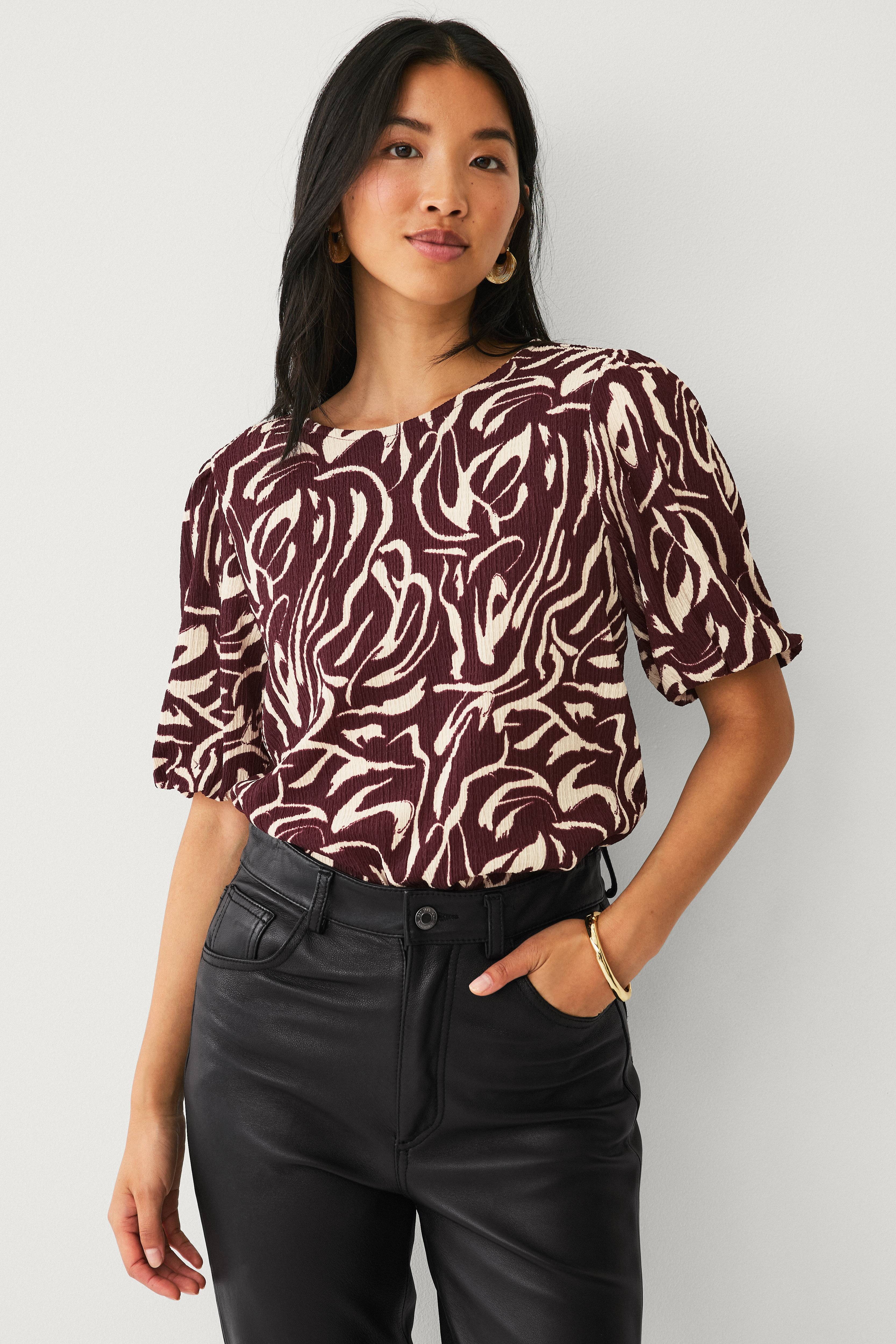 • Top i tynd, blød polyesterblanding med struktur og mønster• Afrundet halsudskæring• Korte ballonærmer med elastik ved manchetterne• Længde: 58 cm i størrelse S