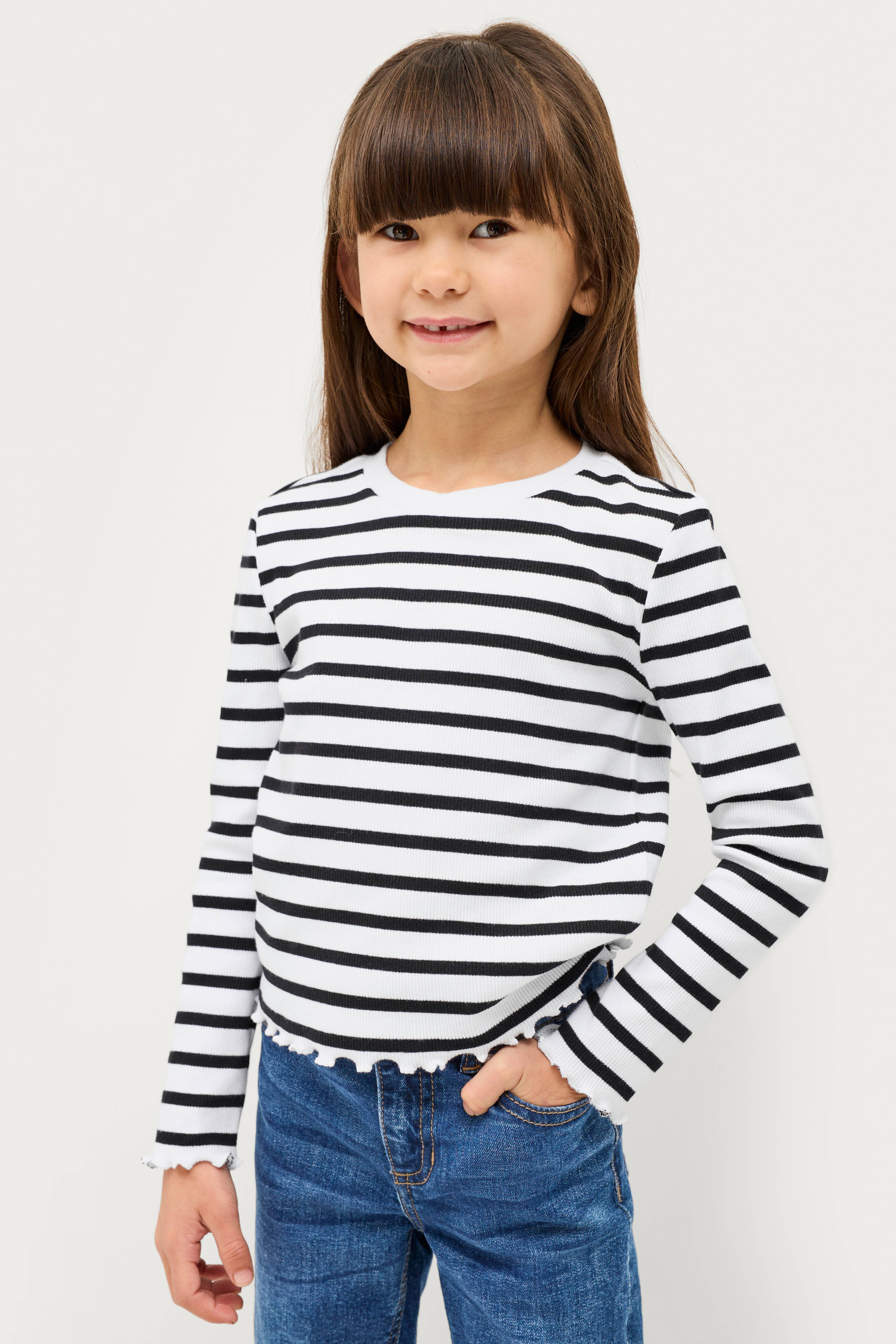 • Stribet top i ribbet bomuldsjersey