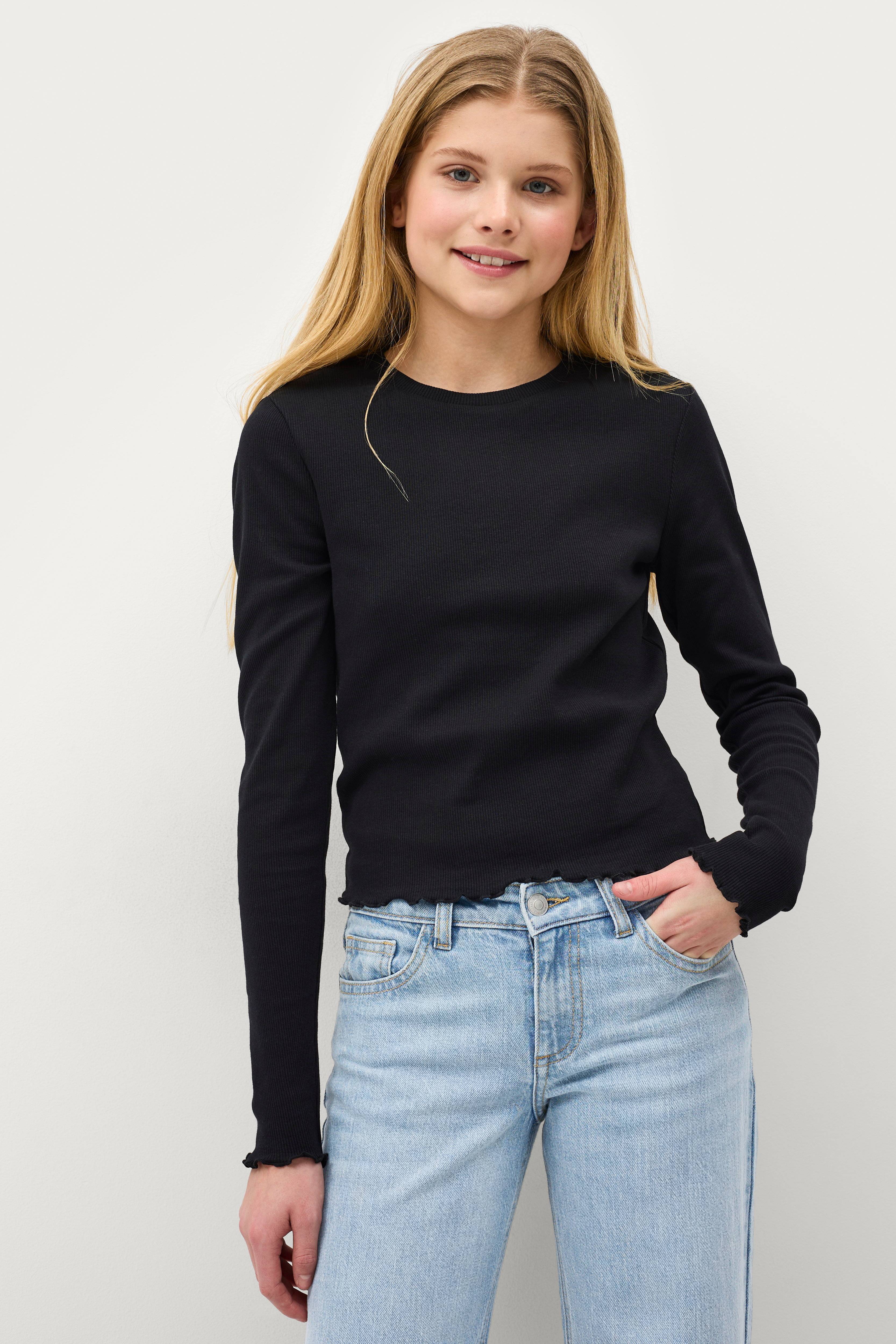 • Langærmet top i ribbet, elastisk jersey• Rund halsudskæring