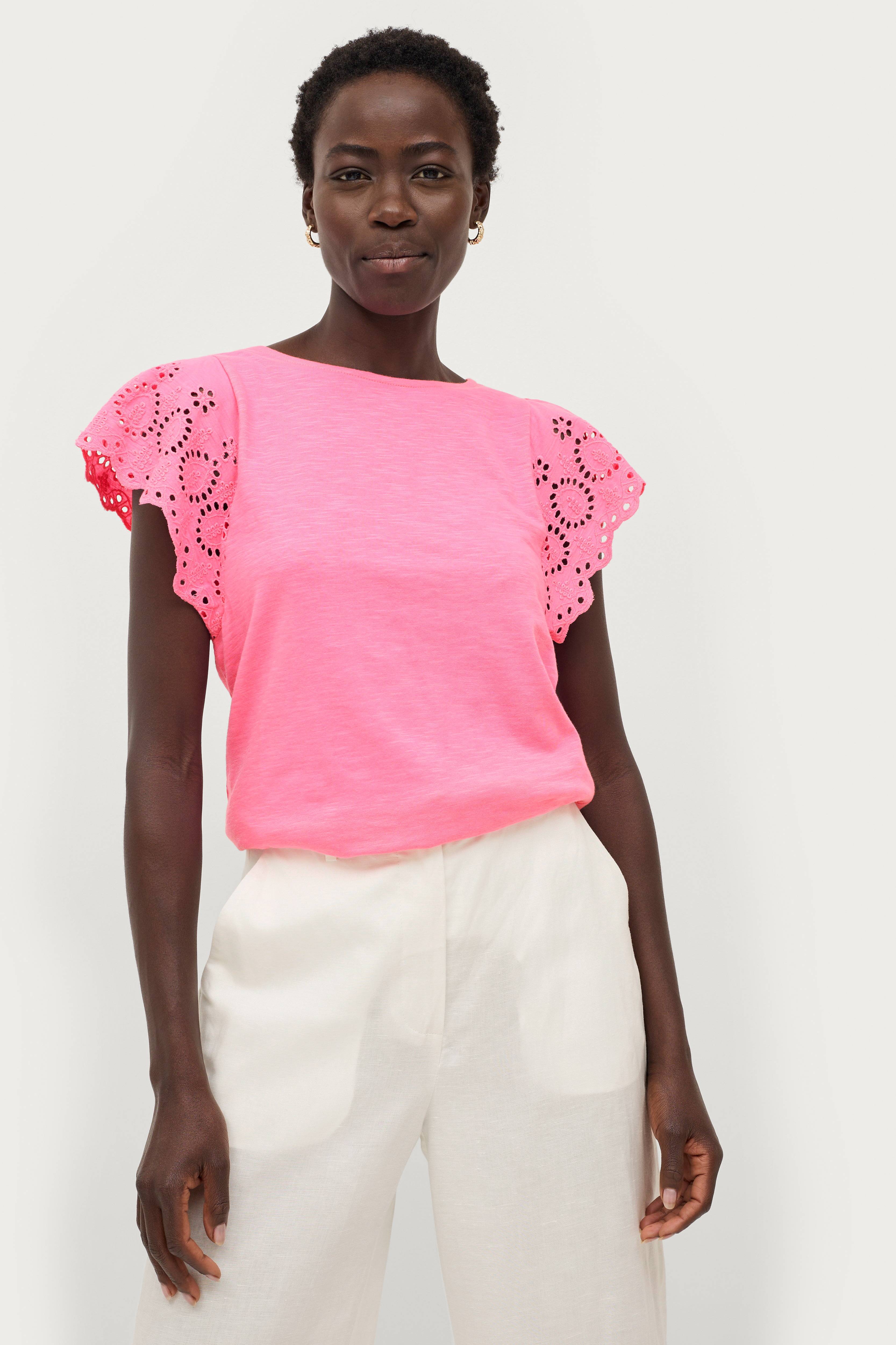 • Top i bomuldsjersey• Korte flagrende ærmer med hulbroderi• Længde: 60 cm i størrelse 34/36