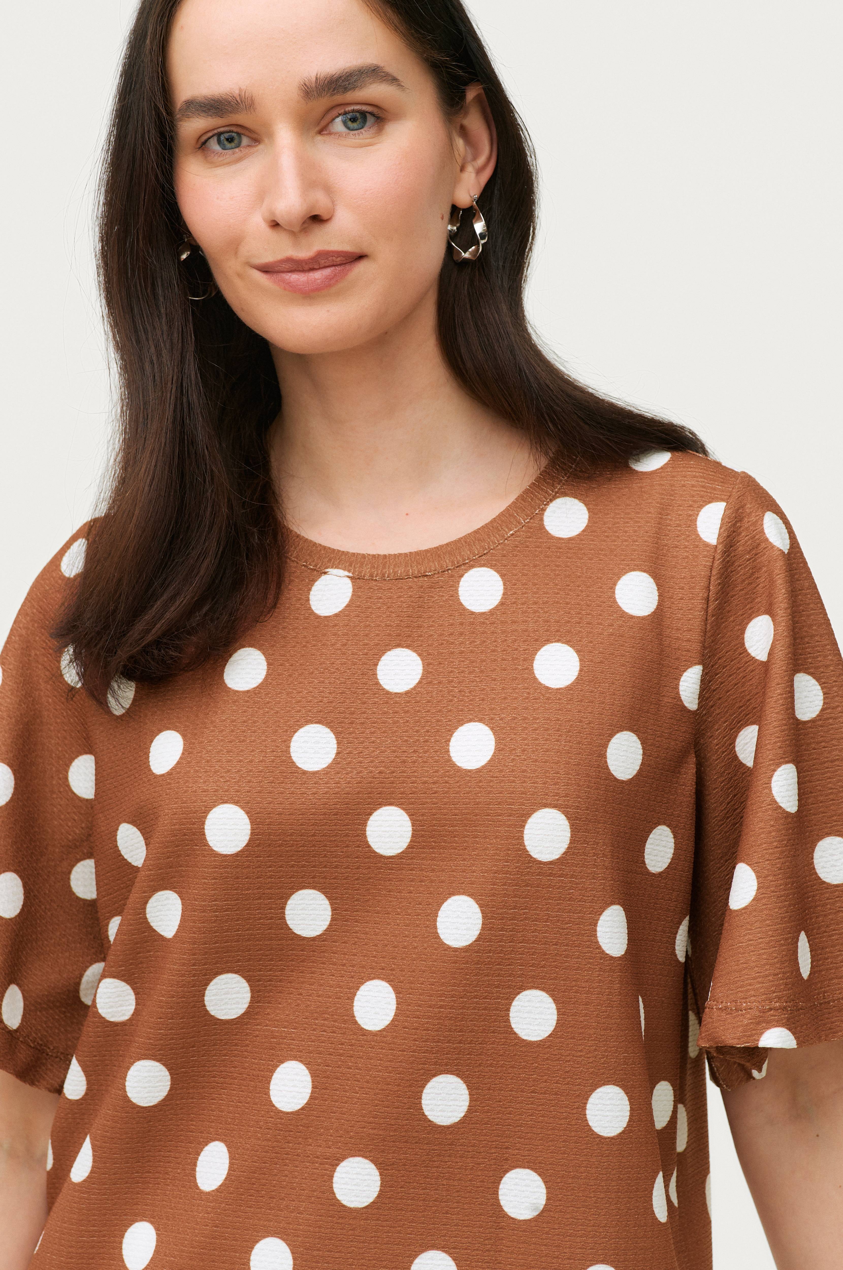 • Rund hals • Korte sommerfugleærmer • Strækkvalitet med struktur • Løs pasform • Længde: 61 cm i størrelse 34/36 • Produktet indeholder genindvundet materiale, som genbruges for at reducere mængden af affald samtidigt med at der ikke anvendes nye ressourcer.