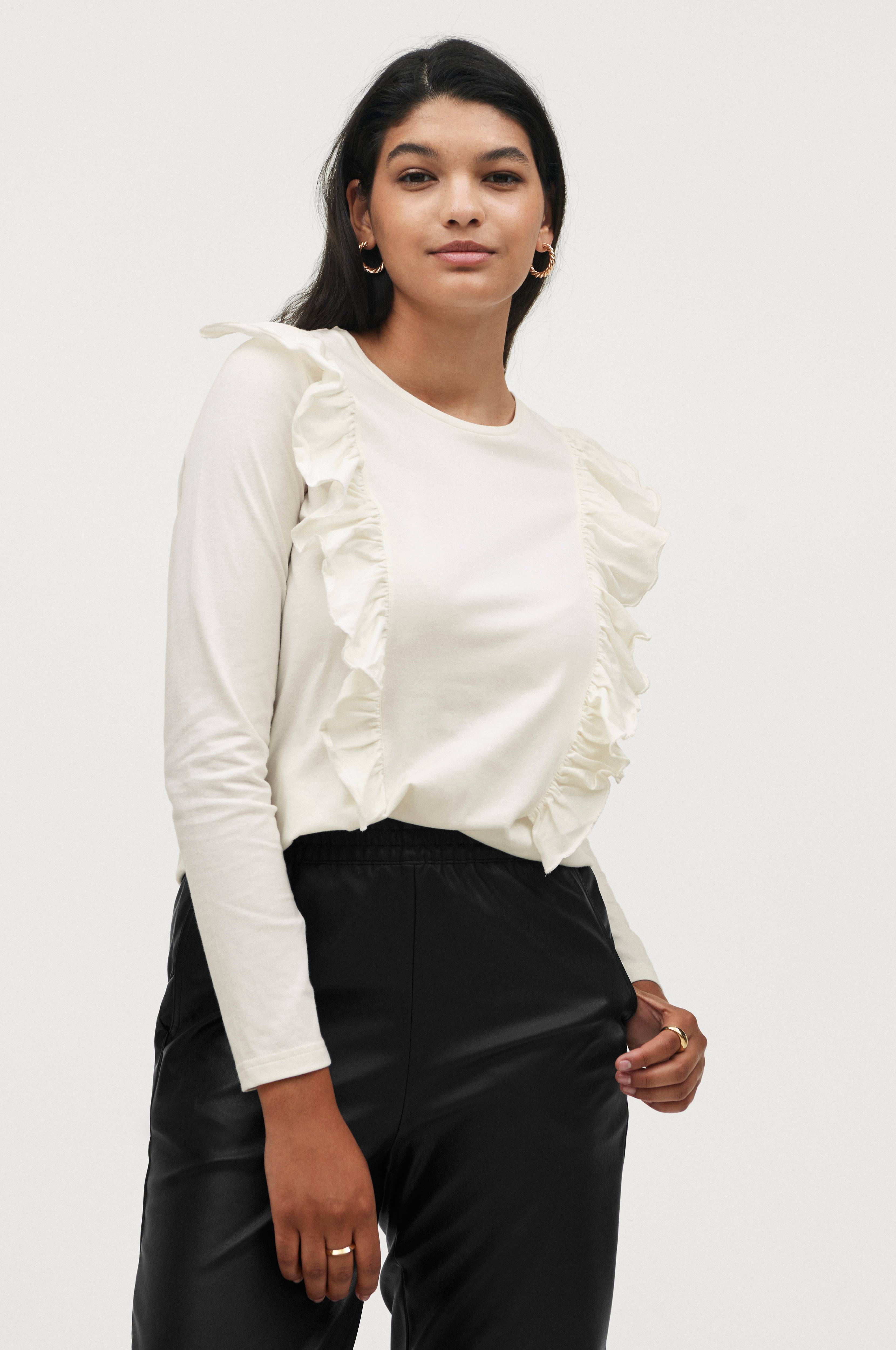 • Langt ærme • Rund halsudskæring • To påsyede volanter foran • Længde: 61 cm i størrelse 34/36 • Ellos samarbejder med Better Cotton for at forbedre bomuldsdyrkningen globalt. Better Cotton er en global nonprofitorganisation, der underviser bomuldsdyrkere i metoder til mere bæredygtig bomuldsdyrkning og arbejder for mere effektiv brug af vand og reduceret brug af pesticider. Better Cotton bringer forbedrede sociale, økonomiske og miljømæssige forhold for bomuldsbønder. Ved at vælge vores bomuldsprodukter støtter du vores investering i Better Cottons mission. Better Cotton er fremskaffet via et system med massebalance og kan ikke fysisk spores til slutprodukter. Besøg bettercotton.org/learnmore for mere information om Better Cotton.