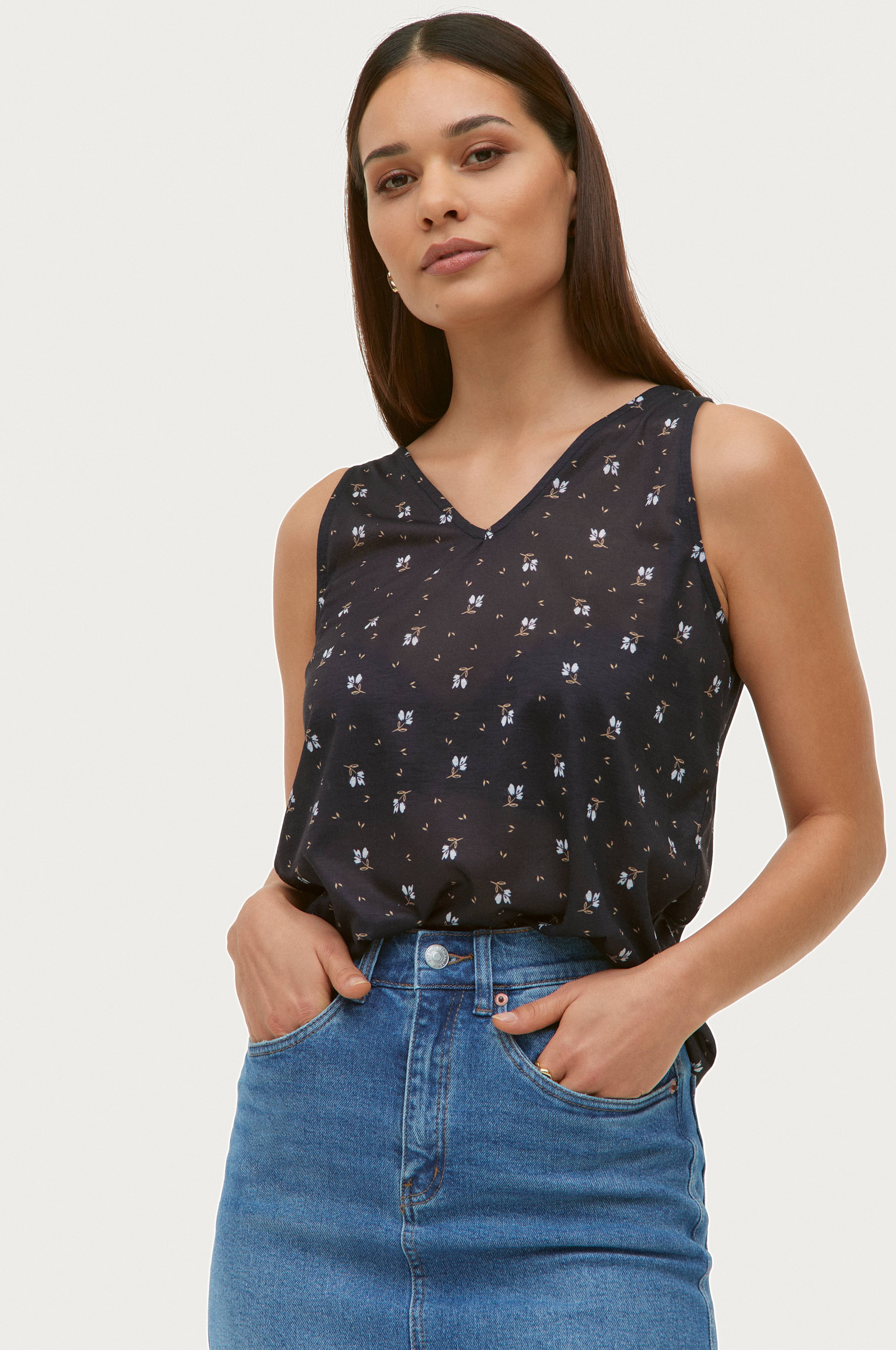 • Ærmeløs top • Vævet kvalitet • V-udskæring ved fronten og ved bagsiden • Produktet indeholder genindvundet materiale, som genbruges for at reducere mængden af affald samtidigt med at der ikke anvendes nye ressourcer.