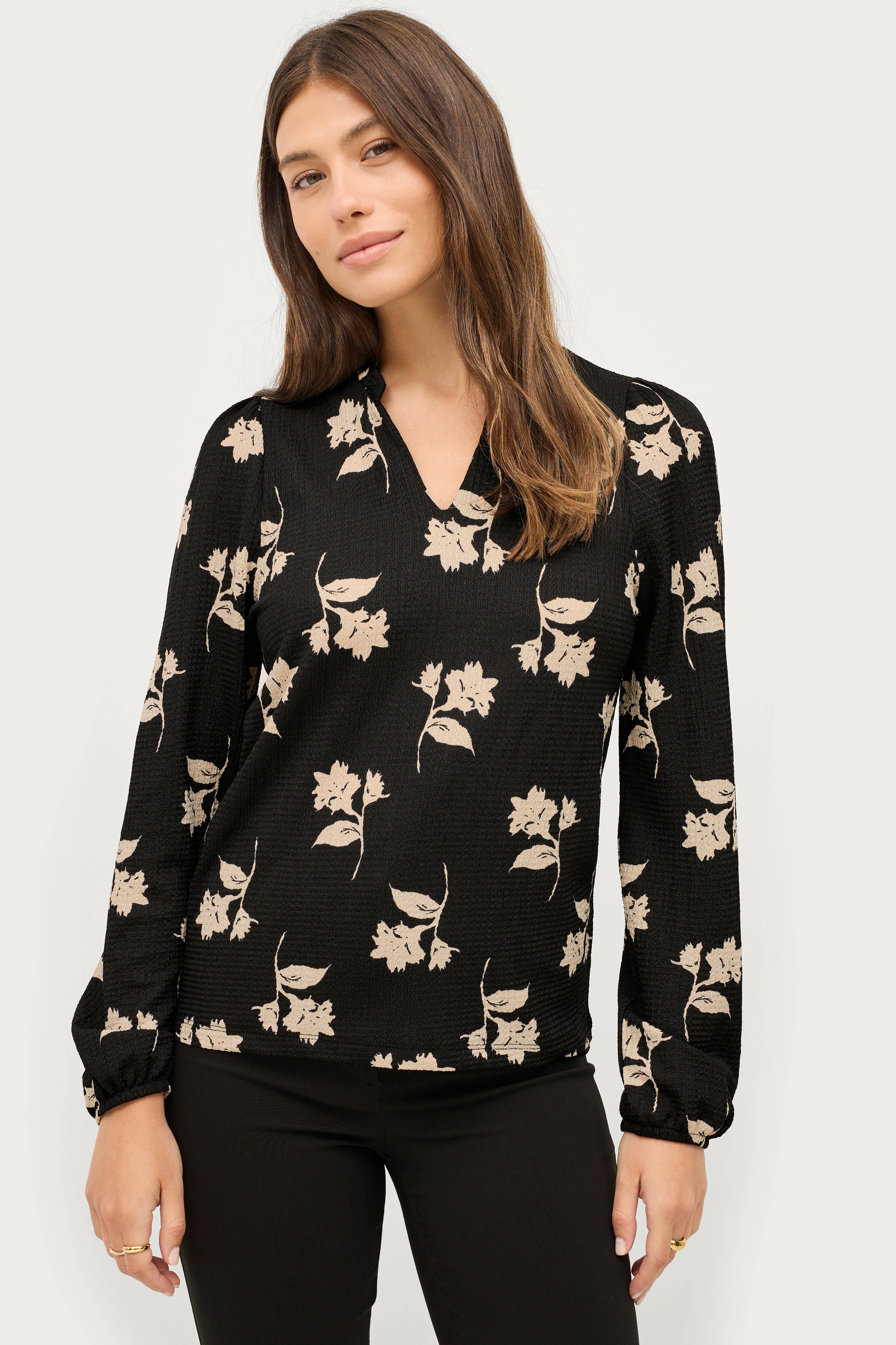 • Elastisk materiale • V-formet halsudskæring med flæsekant hele vejen rundt • Lange ærmer med elastiske bånd ved manchetterne • Længde: 65 cm i størrelse 34/36 • Produktet indeholder genindvundet materiale, som genbruges for at reducere mængden af affald samtidigt med at der ikke anvendes nye ressourcer.