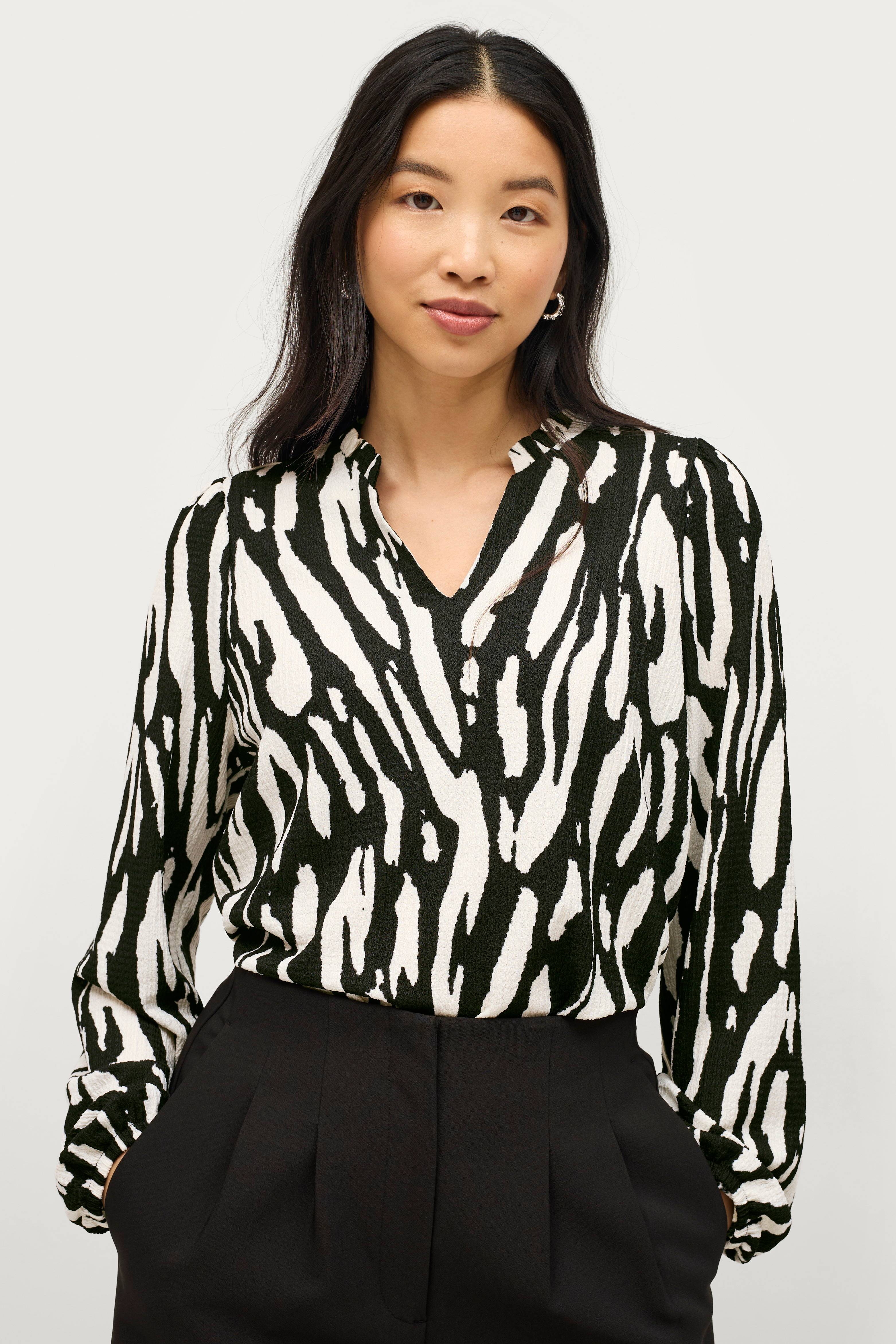 • Elastisk kvalitet med struktur • V-formet halsudskæring med lille flæsekant hele vejen rundt • Lange ærmer med elastik ved manchetterne • Længde: 65 cm i størrelse 34/36