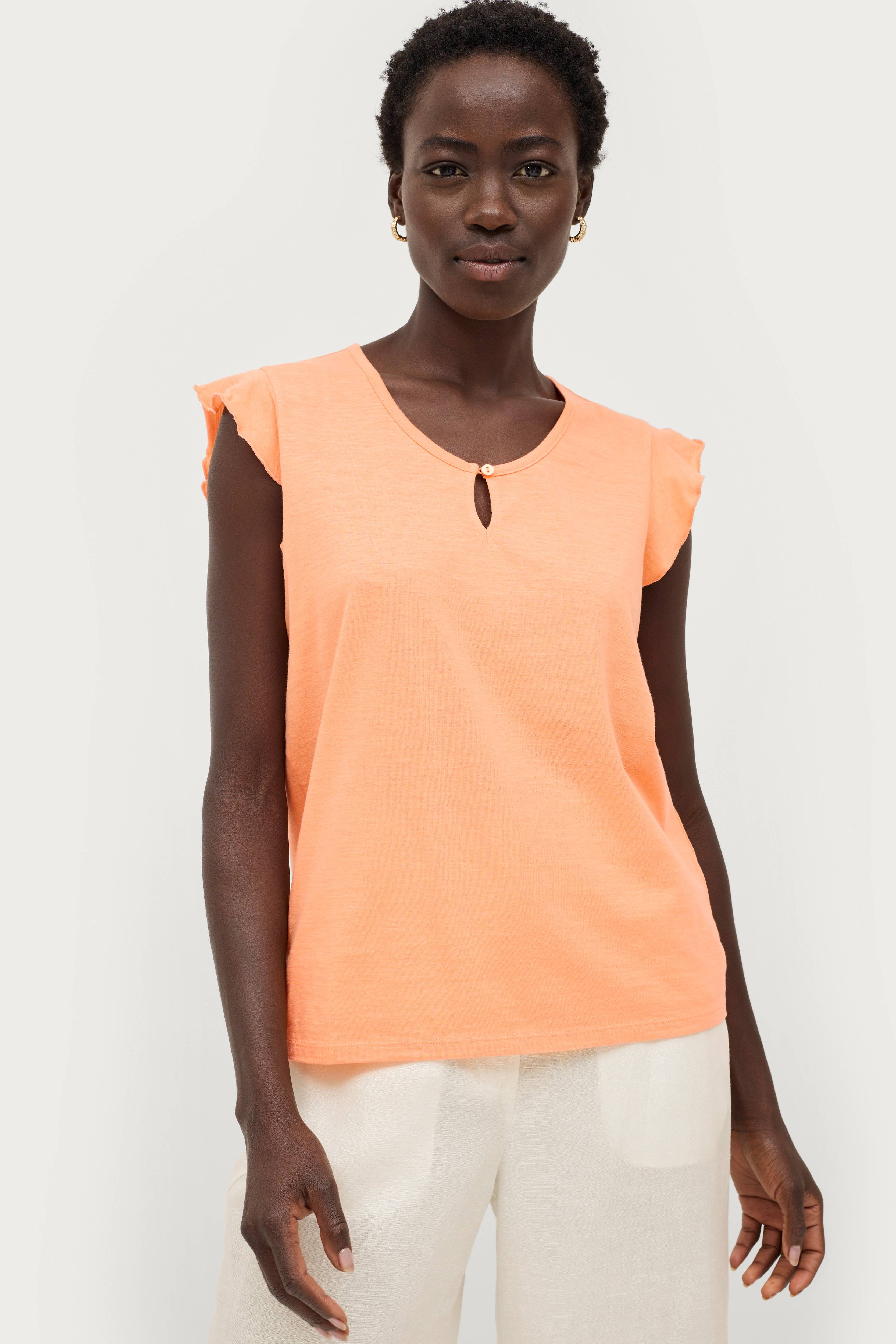 • Top i bomuldsjersey• Korte flagrende ærmer• Rund hals med ventilation og knap foran• Længde: 60 cm i størrelse 34/36