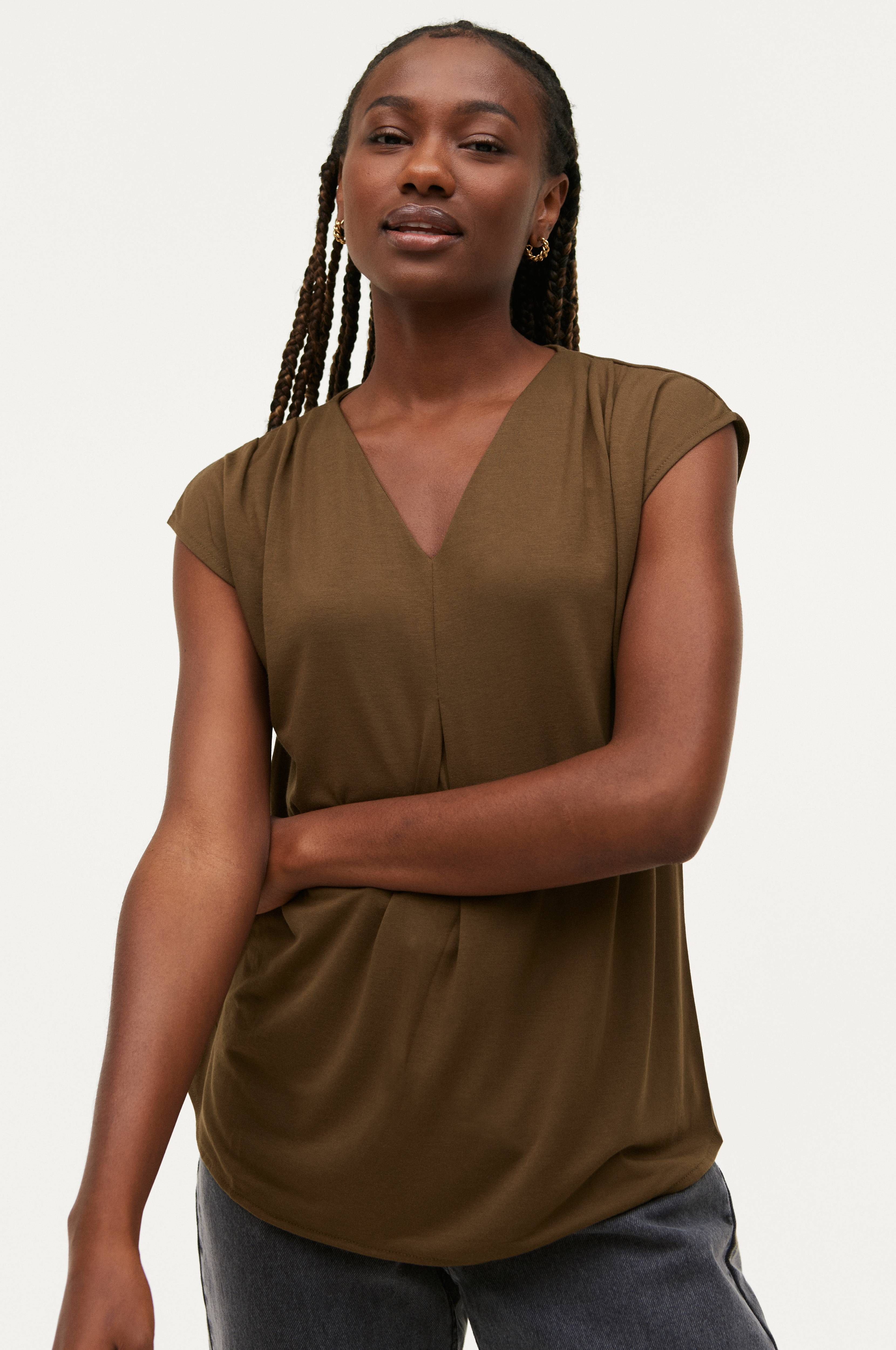 • Kort ærme• Læg på skuldrene• V-udskæring med læg foran• Længde: 68 cm i størrelse 34/36