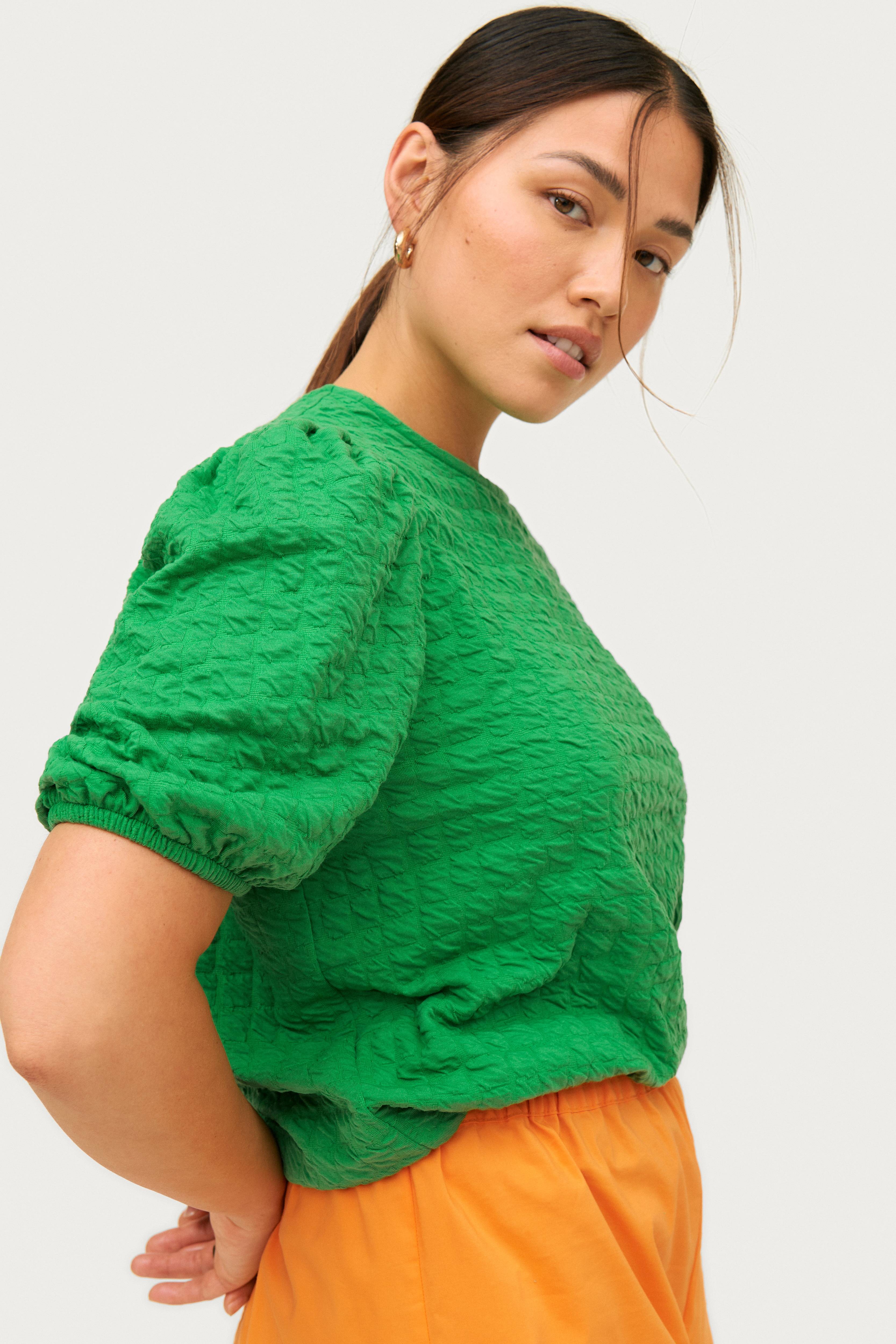 Min favorit helt klart. Blød og behagelig som en t-shirt, men med så stilfulde pufærmer, der gør ethvert outfit enestående! Godt i stl tog jeg 38/40, som…