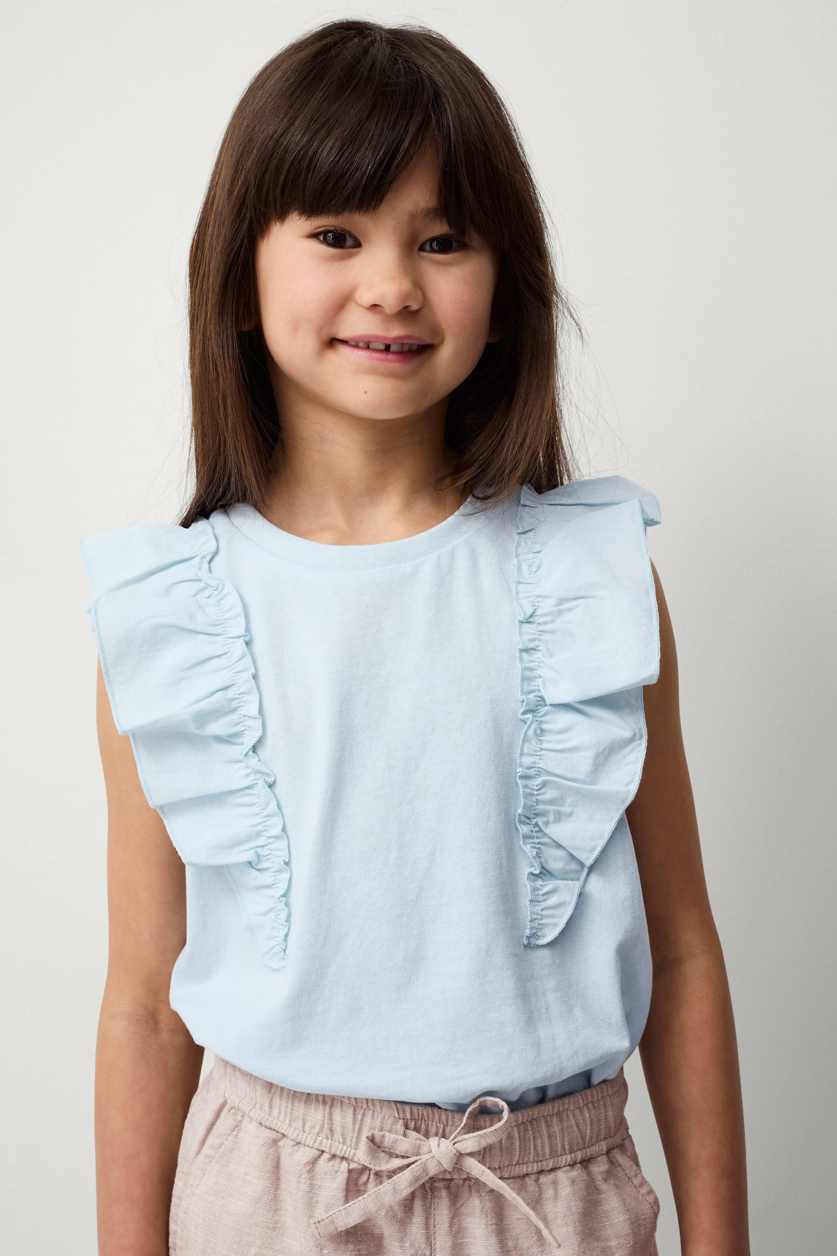 • Ærmeløs top i bomuldsjersey• Vævede volanter over skuldrene
