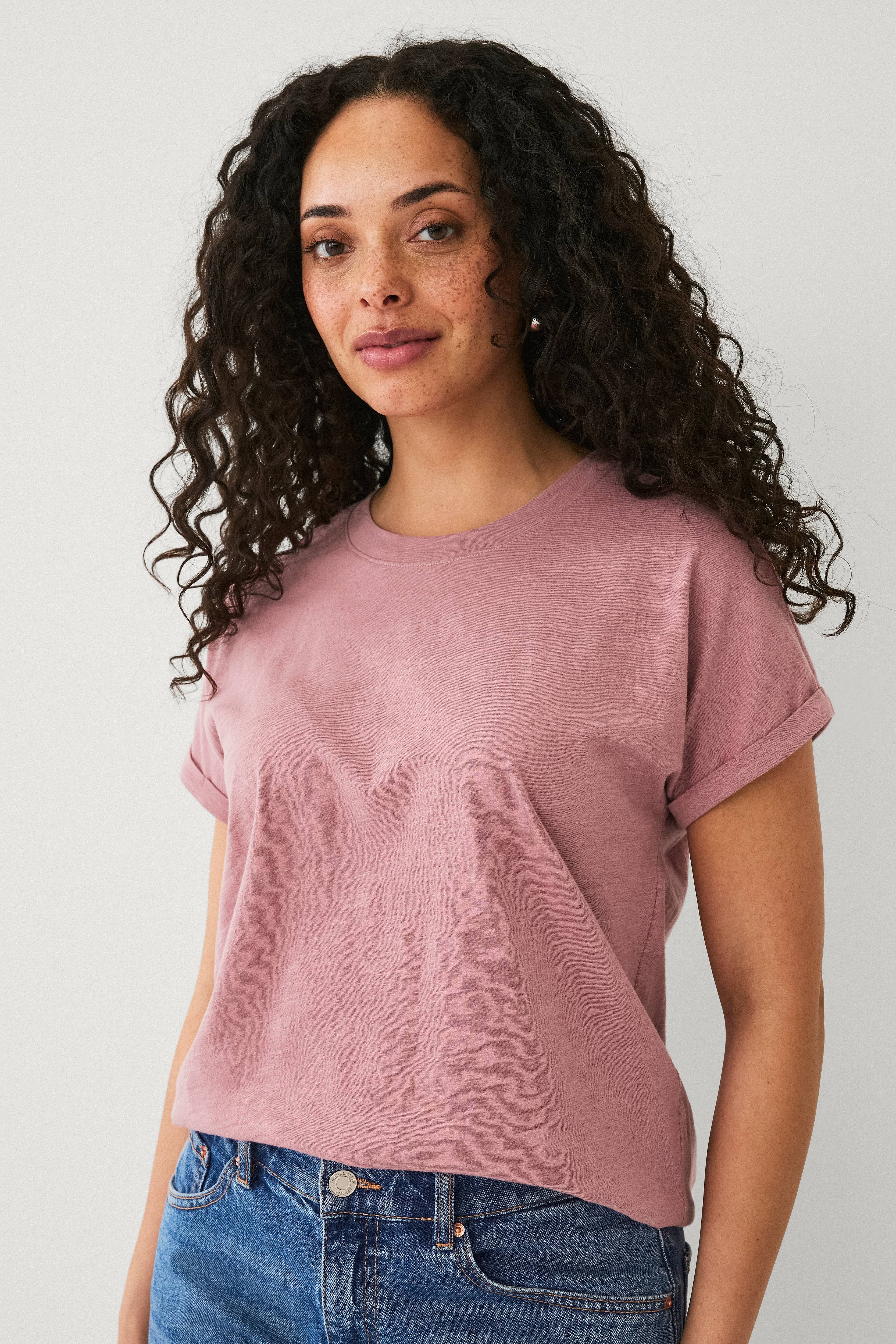 • Nedsænket skulder med kort ærme og fæstet oprullet