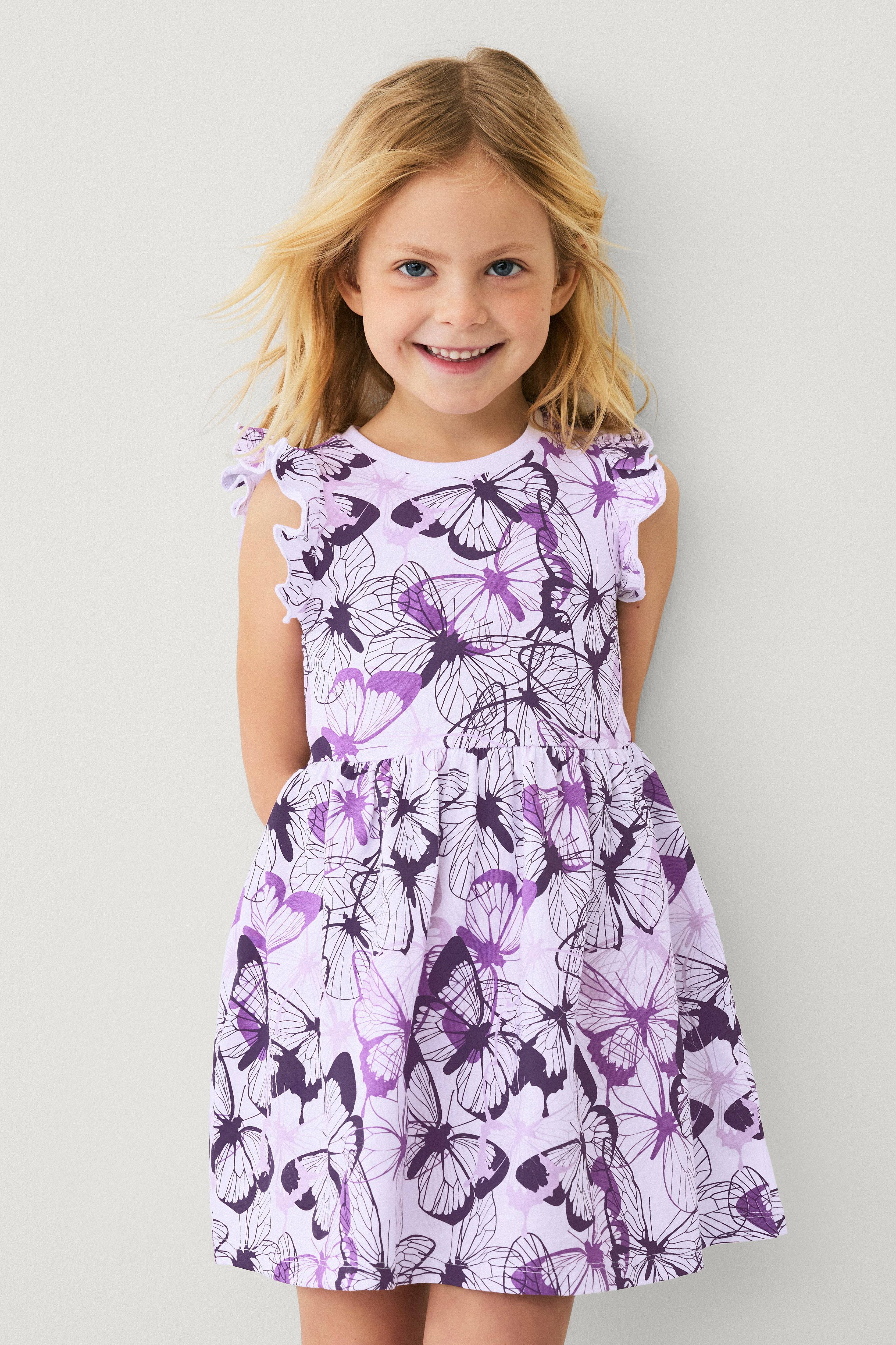 • Ærmeløs model med svaj med volanter omkring ærmegabene