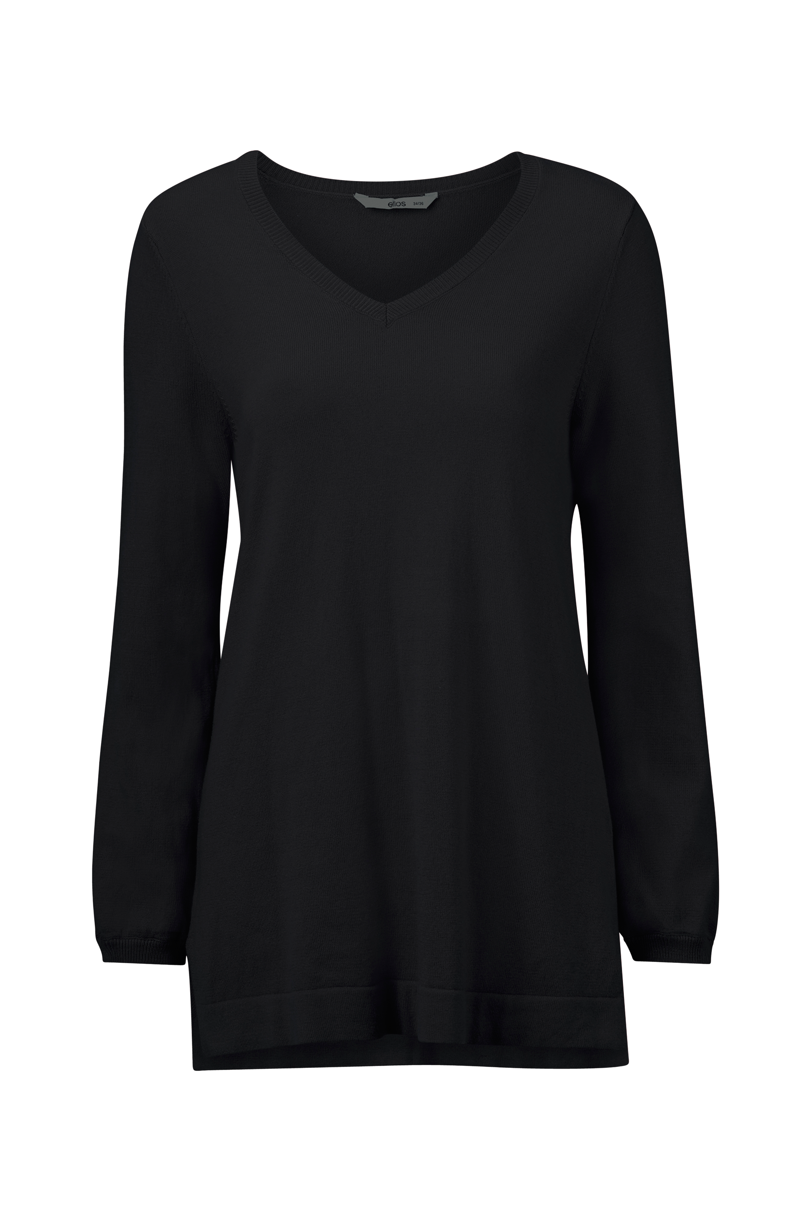 Finstrikket trøje Ada i blød kvalitet med løs pasform. V-formet halsudskæring med ribkant og smal ribkant i ærmekant. Slids i siderne og noget længere bagpå.