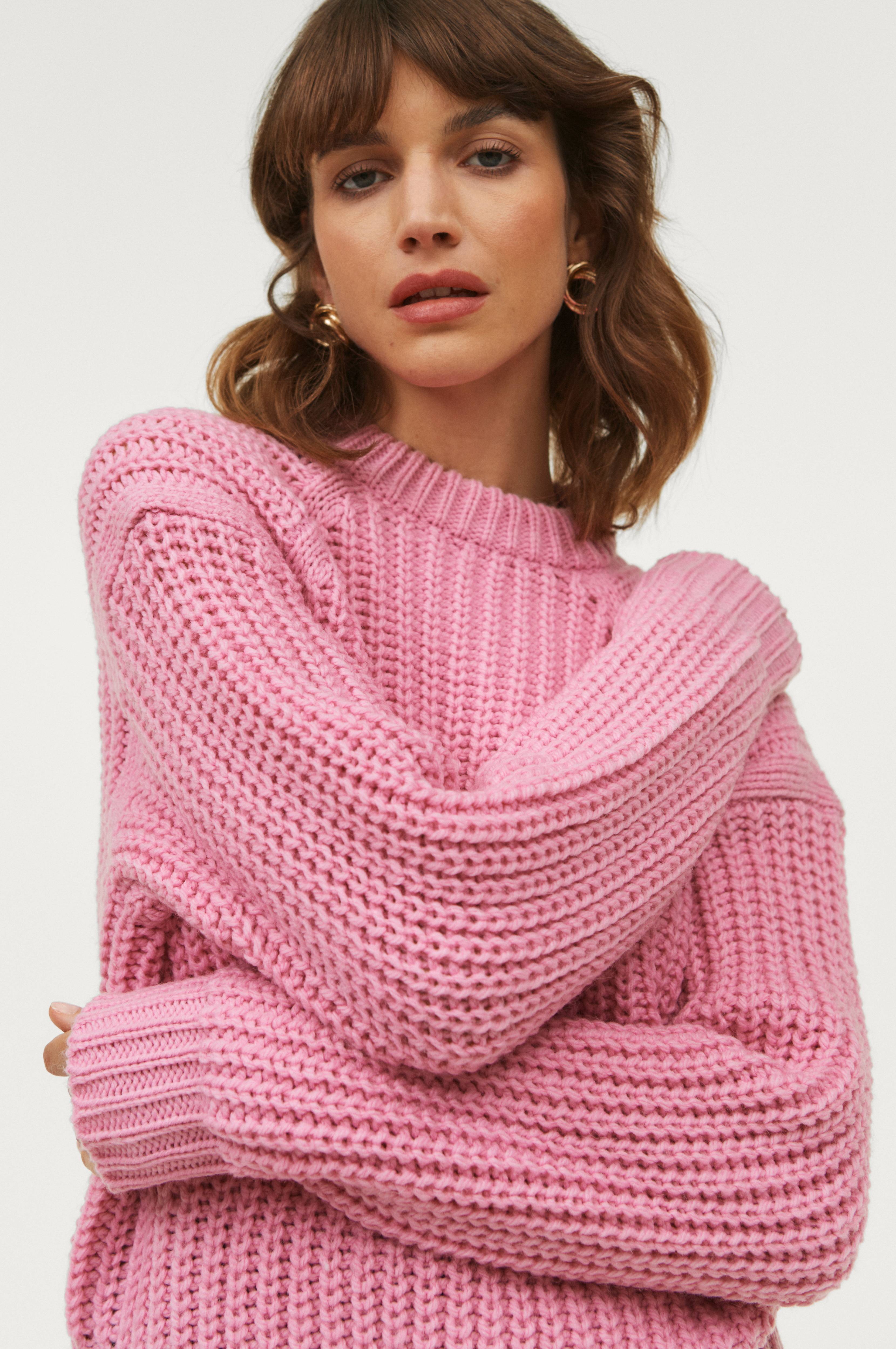 • Uformel pasform • Rund, ribstrikket halsudskæring • Raglanærme • Ribstrik ved manchetterne og nederst • Længde: 59 cm i størrelse 34/36 • Produktet indeholder genindvundet materiale, som genbruges for at reducere mængden af affald samtidigt med at der ikke anvendes nye ressourcer.