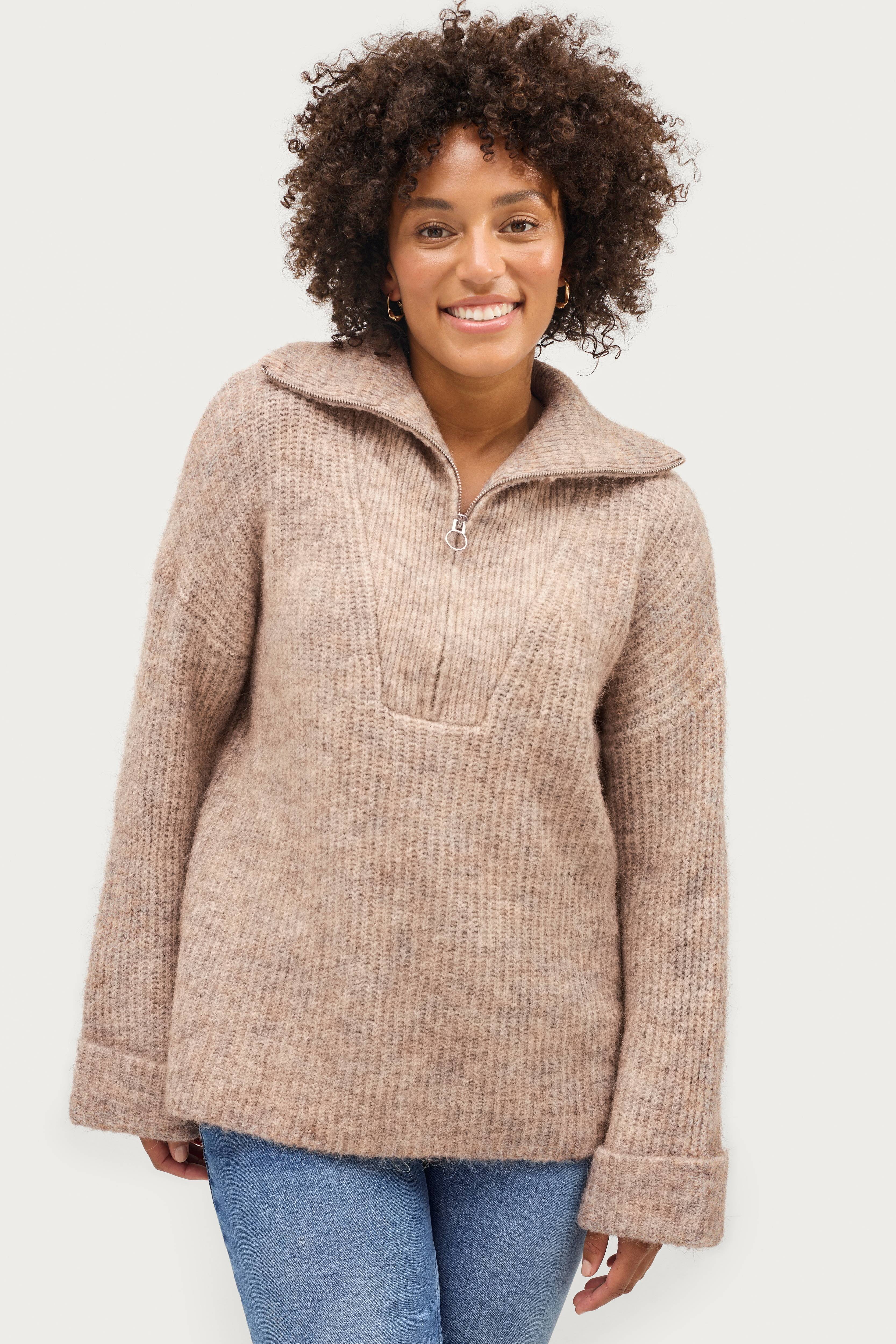 • Lige model• Høj, ribstrikket krave med lynlås• Nedsænket skulder• Lige, langt ærme med oprullet ved manchetterne• Længde: 68 cm i størrelse 34/36