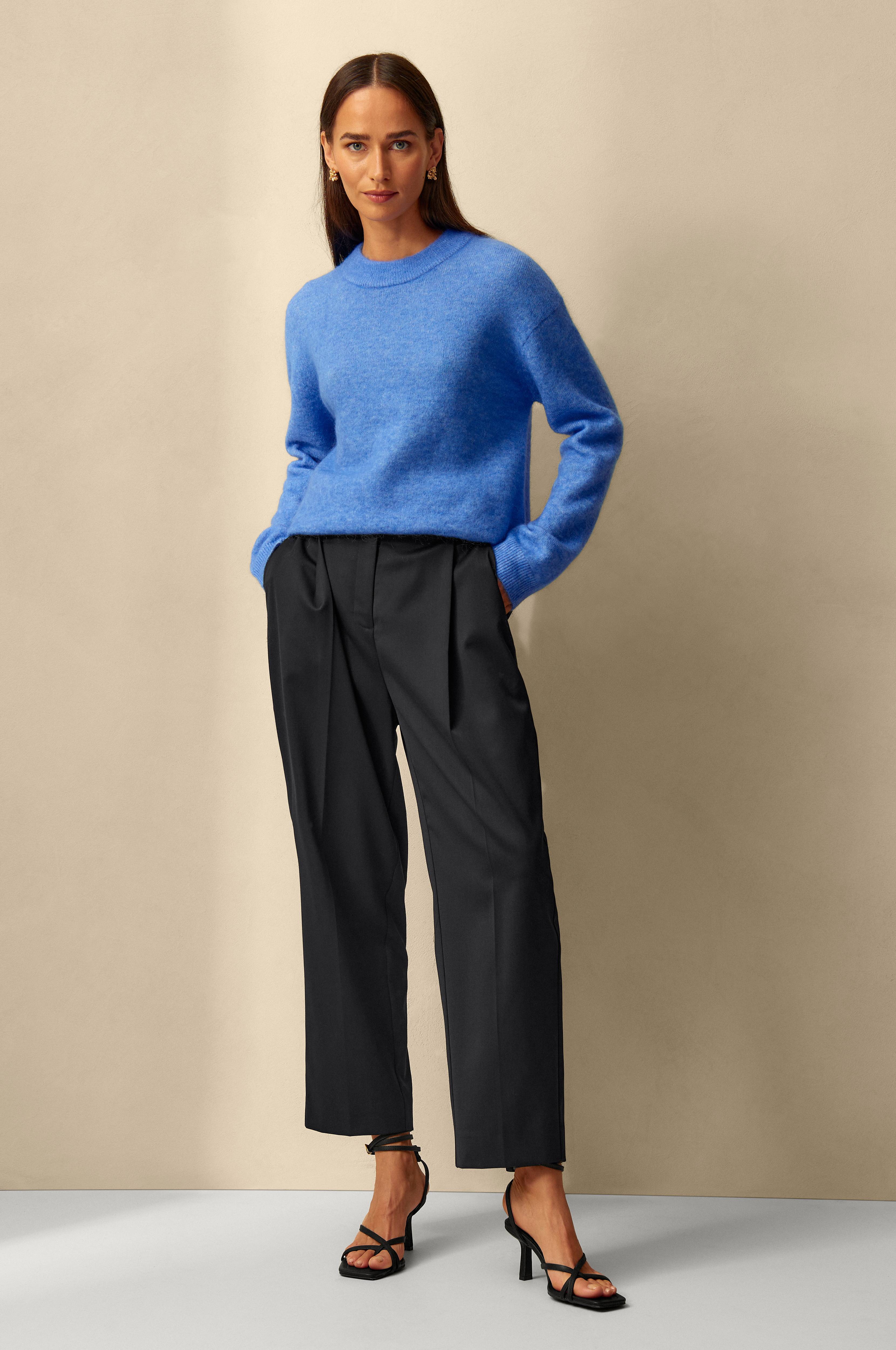 • Strikket trøje i uldmiks• Ribstrikket halsudskæring• Ribstrik nederst og ved manchetterne• Blød kvalitet• Længde: 67 cm i størrelse 34/36