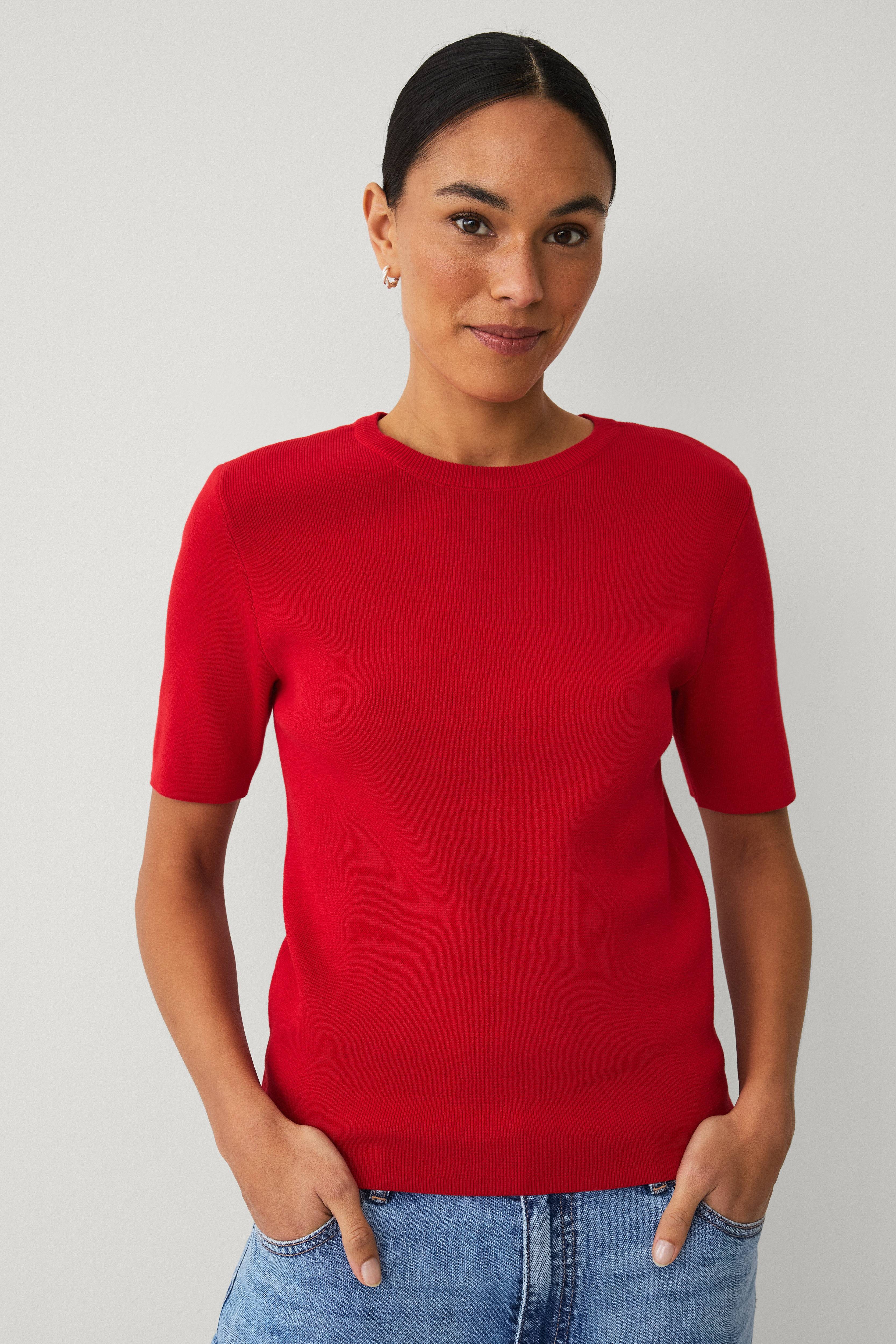 • Trøje i bomuld• Rund halsudskæring• Korte ærmer• Normal pasform• Længde: 59 cm i størrelse S