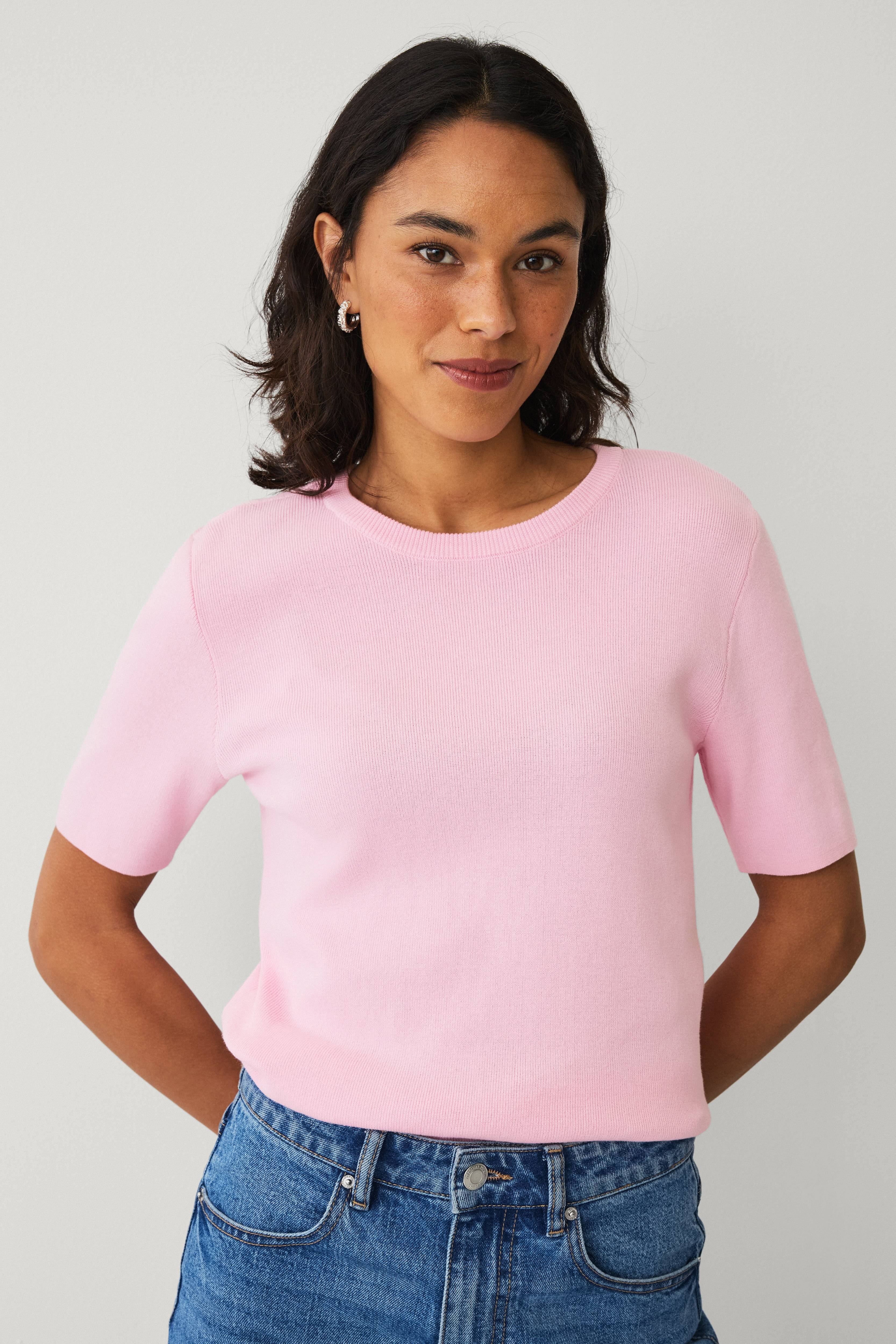 • Trøje i bomuld• Rund halsudskæring• Korte ærmer• Normal pasform• Længde: 59 cm i størrelse S