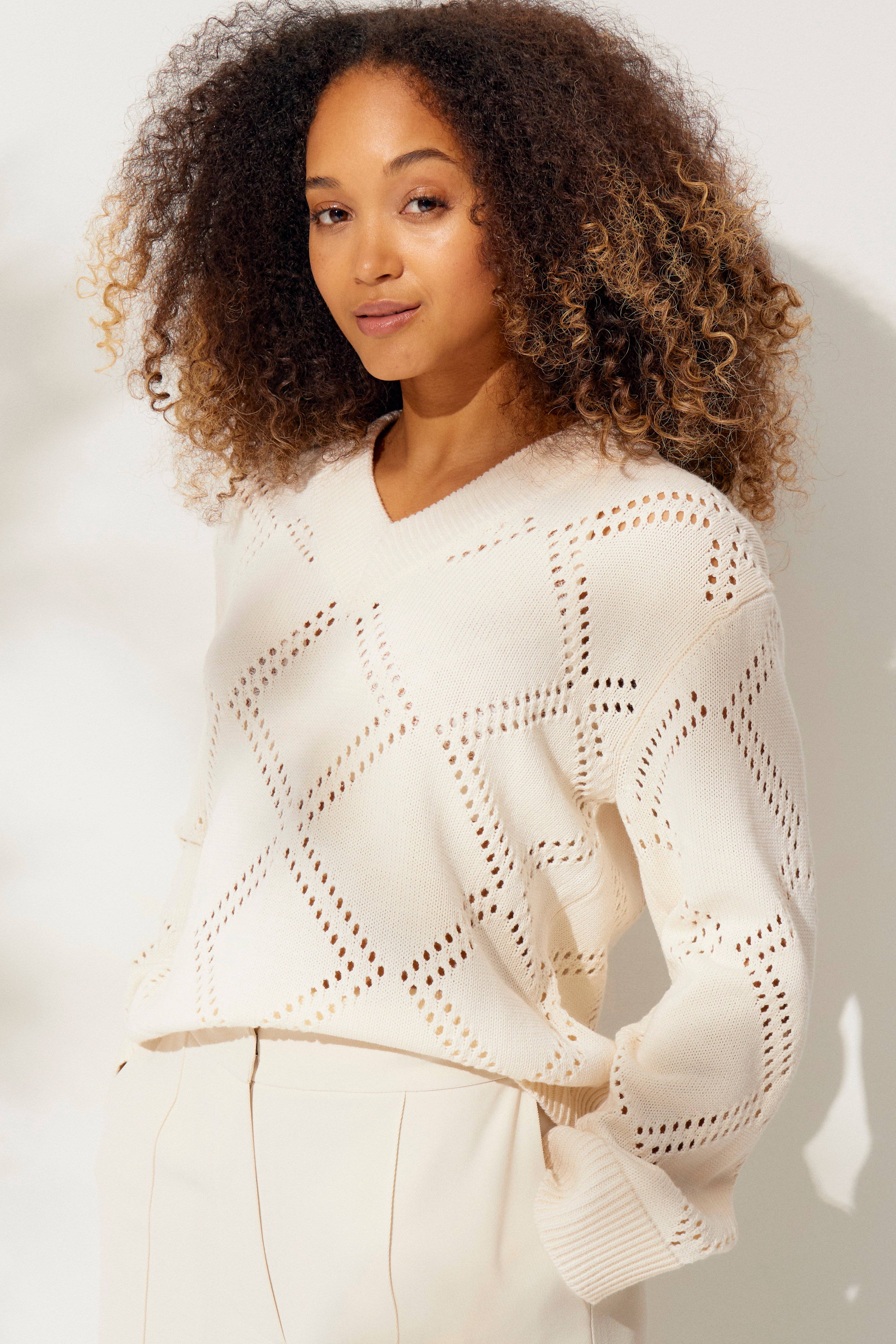 • Strikket trøje med hulmønster hele vejen rundt • Rund, ribbet halsudskæring • Ribmanchetter ved manchetterne og nederst • Længde: 63 cm i størrelse 34/36 • Ellos samarbejder med Better Cotton for at forbedre bomuldsdyrkningen globalt. Better Cotton er en global nonprofitorganisation, der underviser bomuldsdyrkere i metoder til mere bæredygtig bomuldsdyrkning og arbejder for mere effektiv brug af vand og reduceret brug af pesticider. Better Cotton bringer forbedrede sociale, økonomiske og miljømæssige forhold for bomuldsbønder. Ved at vælge vores bomuldsprodukter støtter du vores investering i Better Cottons mission. Better Cotton er fremskaffet via et system med massebalance og kan ikke fysisk spores til slutprodukter. Besøg bettercotton.org/learnmore for mere information om Better Cotton.