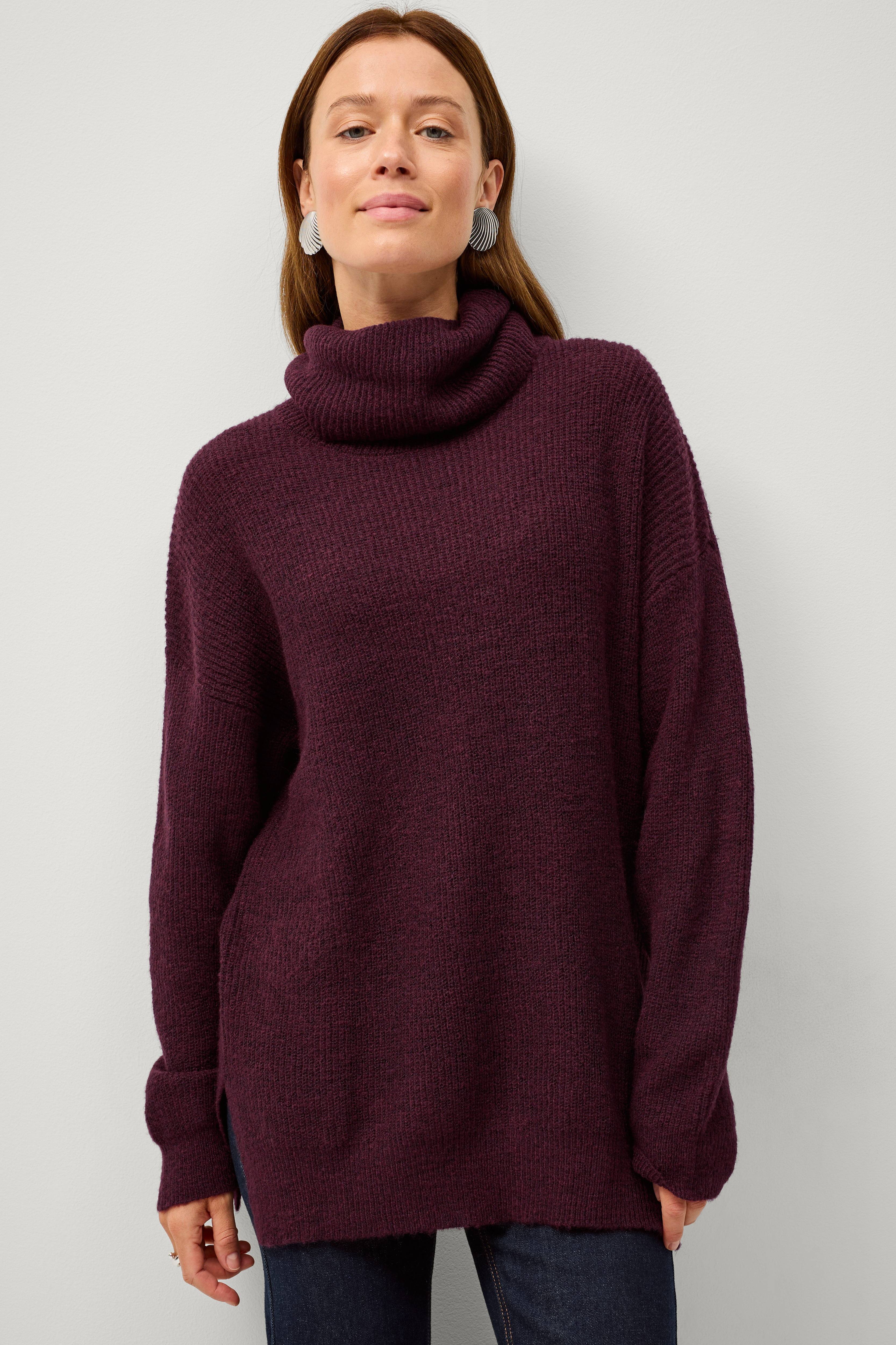 • Længere model• Hyggelig turtleneck• Nedsænkede skuldre• Korte slidser i siderne• Blød, strikket kvalitet• Længde: 74 cm i størrelse 34/36