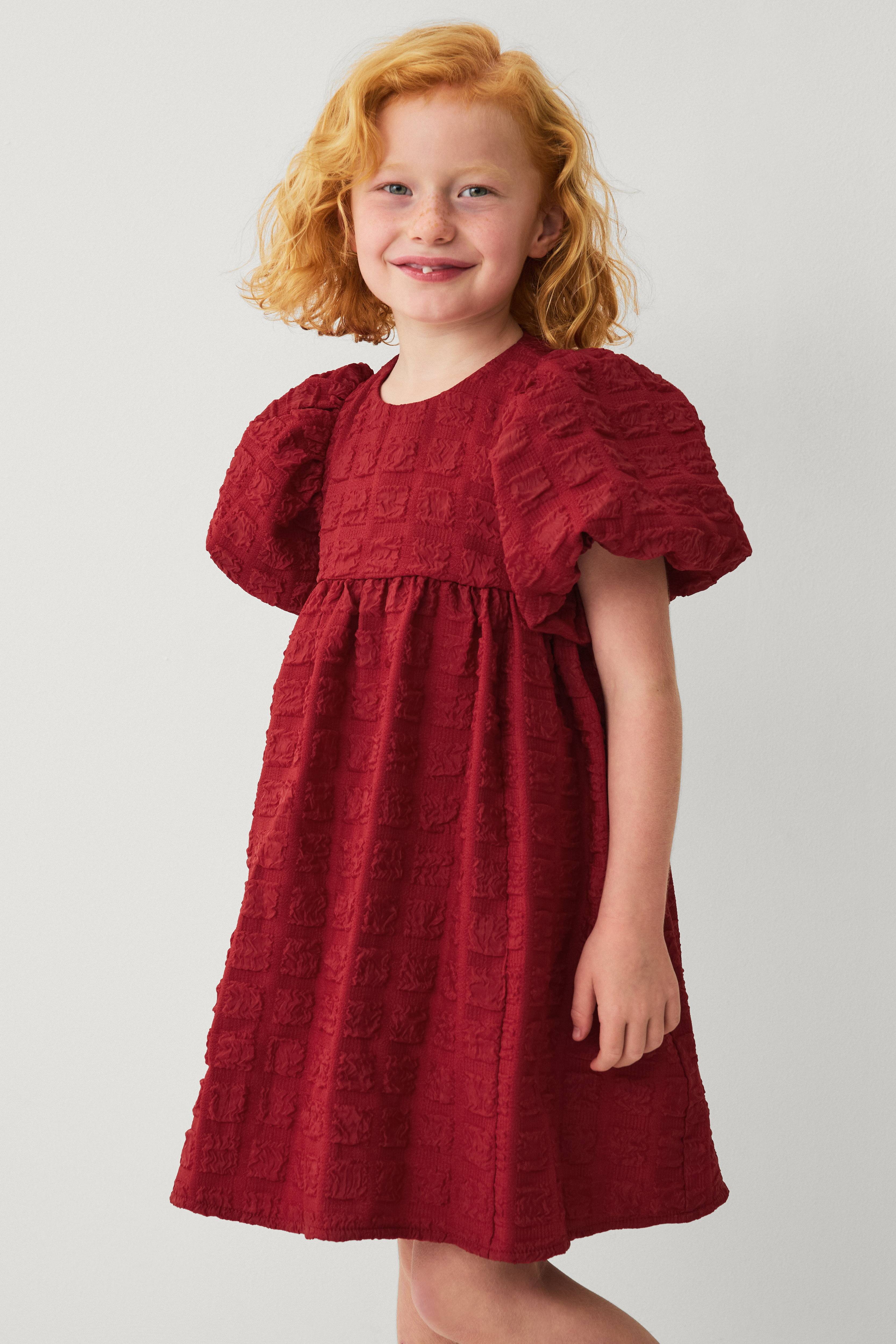 Kjole med pufærmer i strik