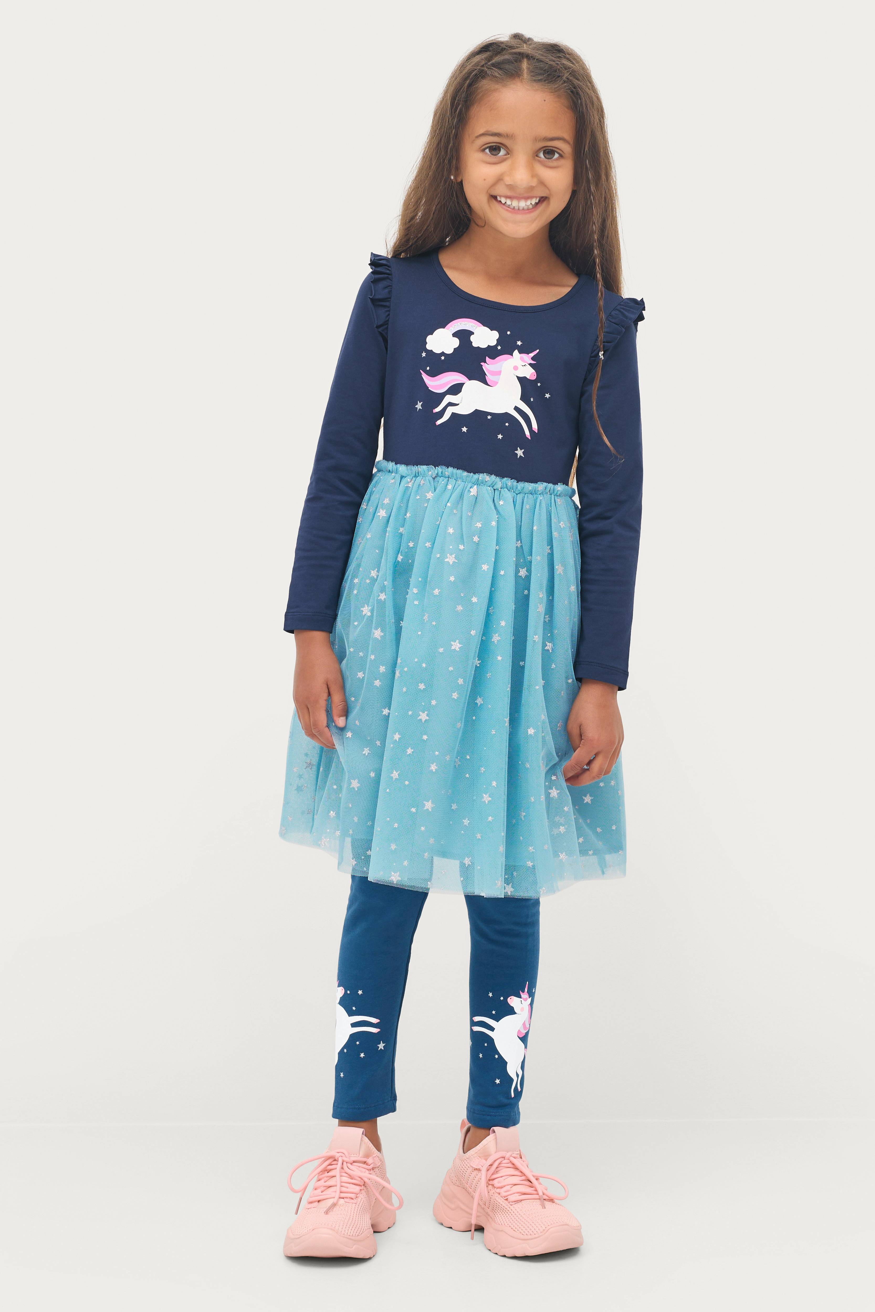 Modellen er 120 cm høj og bærer en str. 110/116