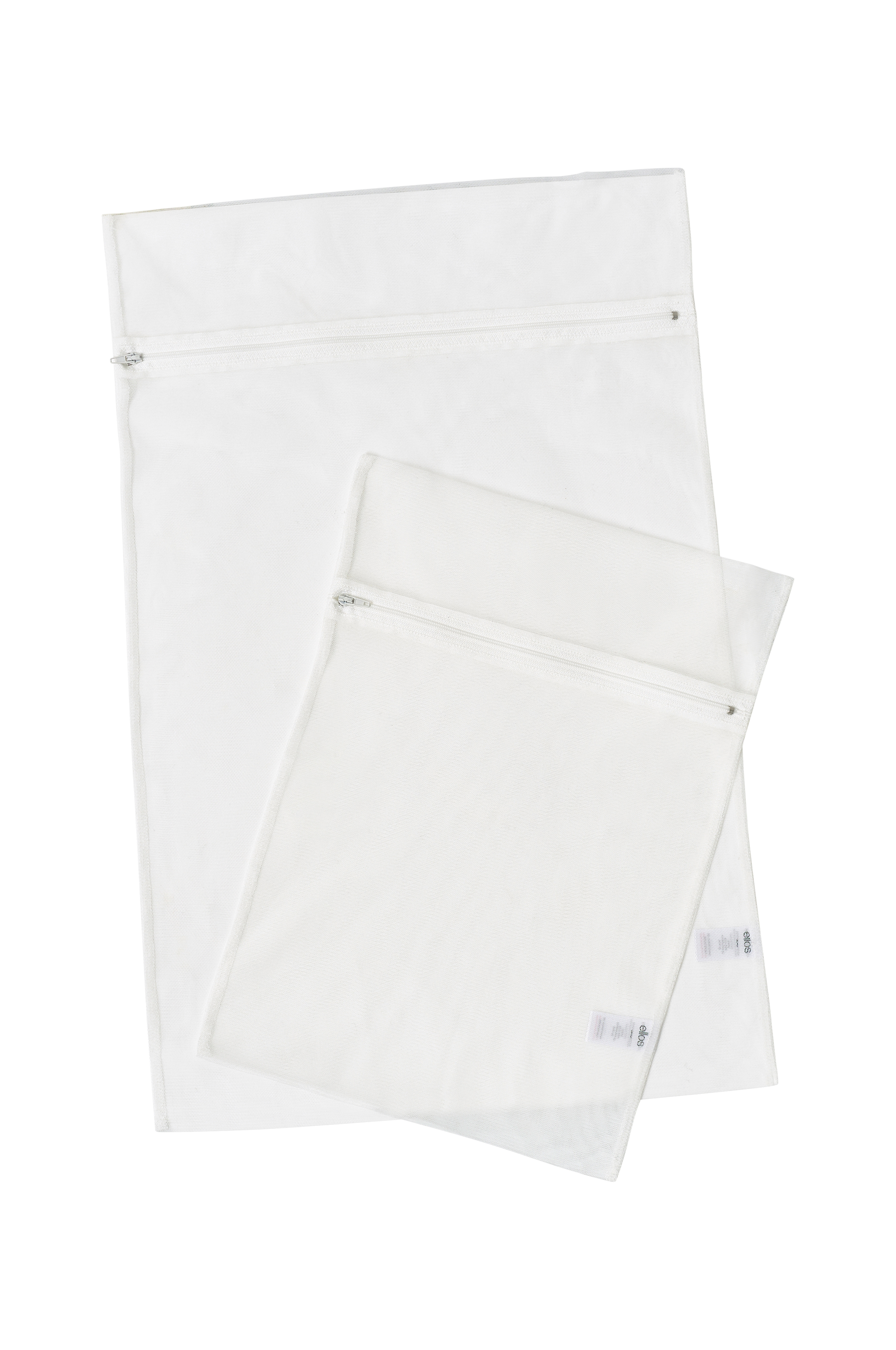 Vasketøjsposer i 2-pak i 2 forskellige størrelser. Fremstillet af slidstærkt, elastisk polyesternet. Åbnes/lukkes med lynlås. Størrelser: 60x40 cm og 40x30 cm.