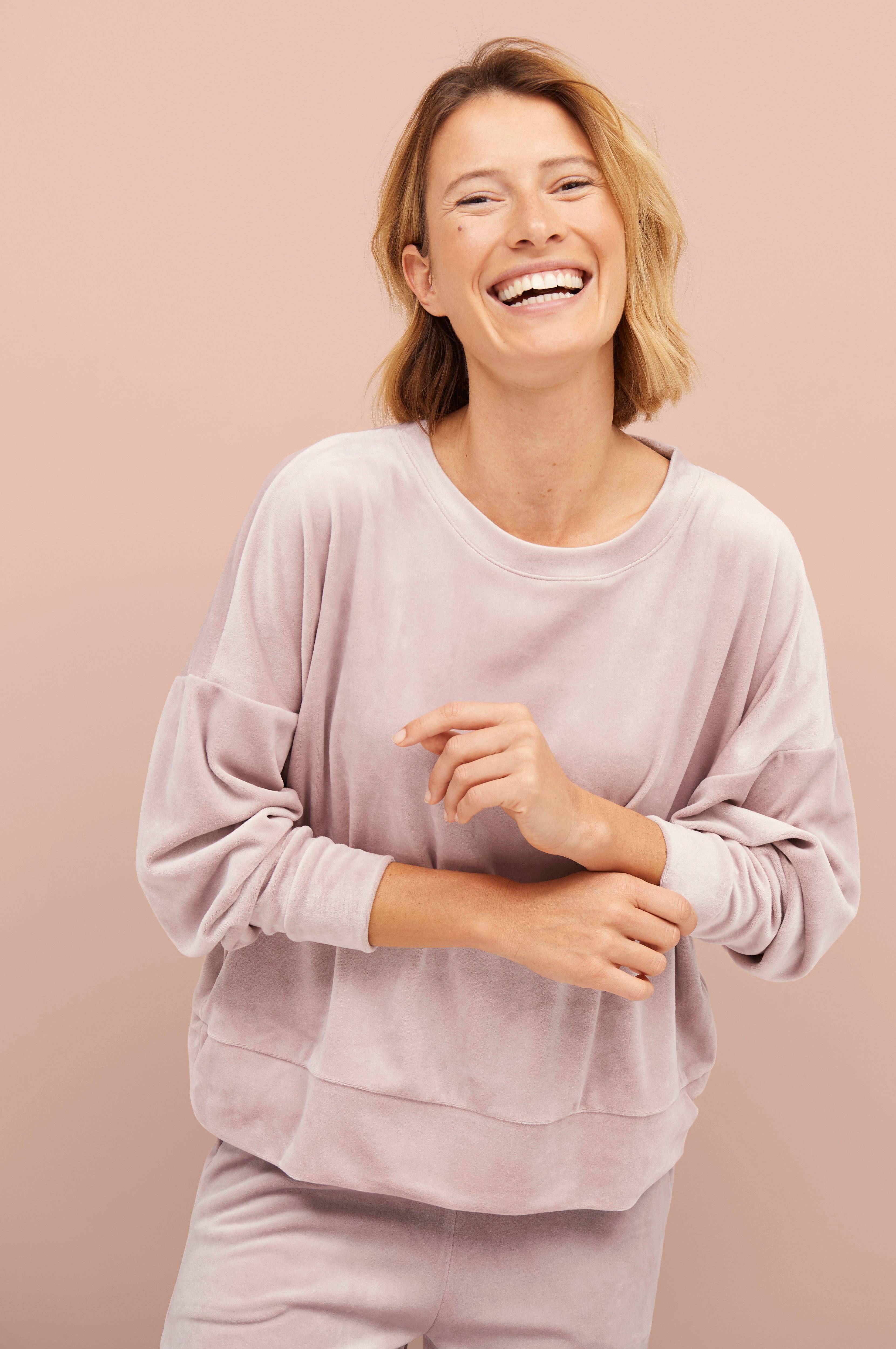 • Uformel model • Nedsænkede skuldre • Manchet ved manchetterne og nederst • Fremstillet af blød, skinnende velour • Længde: 60 cm i størrelse 34/36 • Produktet indeholder genindvundet materiale, som genbruges for at reducere mængden af affald samtidigt med at der ikke anvendes nye ressourcer.